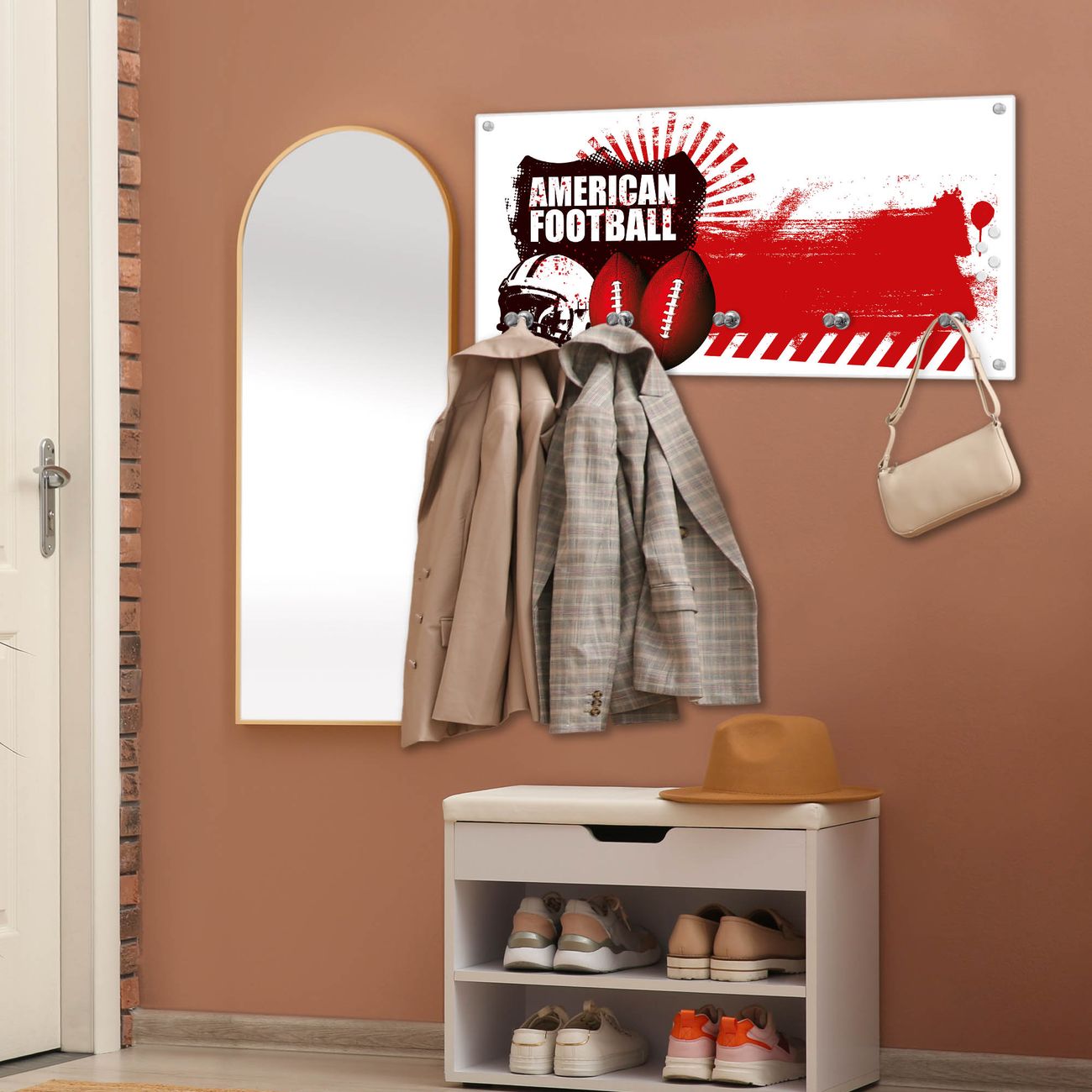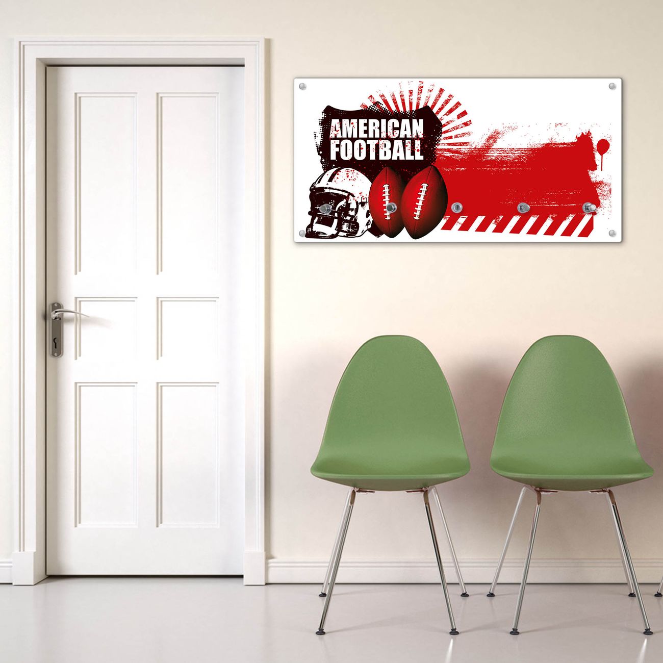Wandgarderobe Glas 80x40cm Motiv American Football