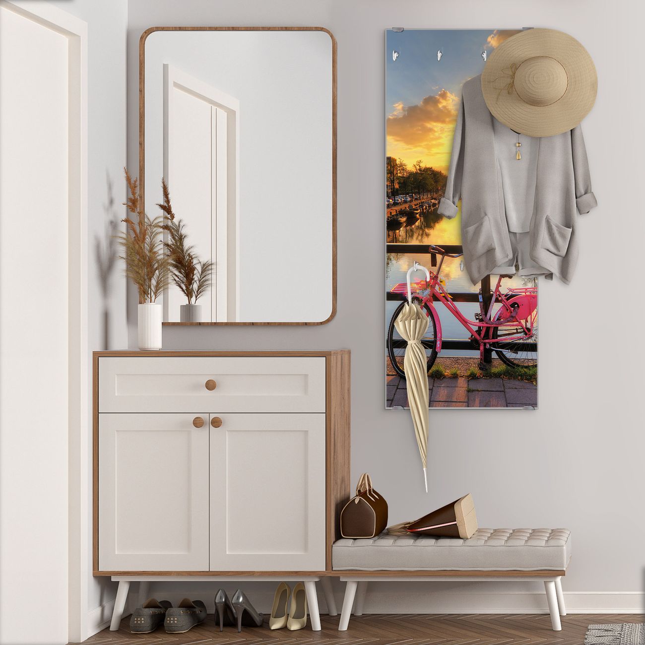 Flurgarderobe Glas 50x125cm Motiv Amsterdam Mit Rad