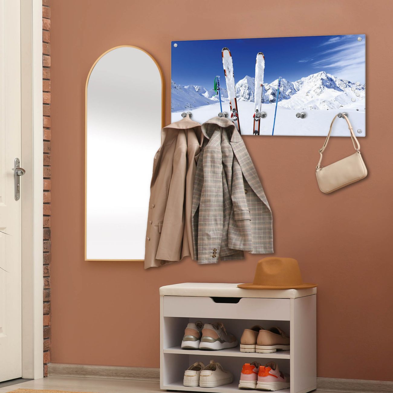 Wandgarderobe Glas 80x40cm Motiv Apres Ski