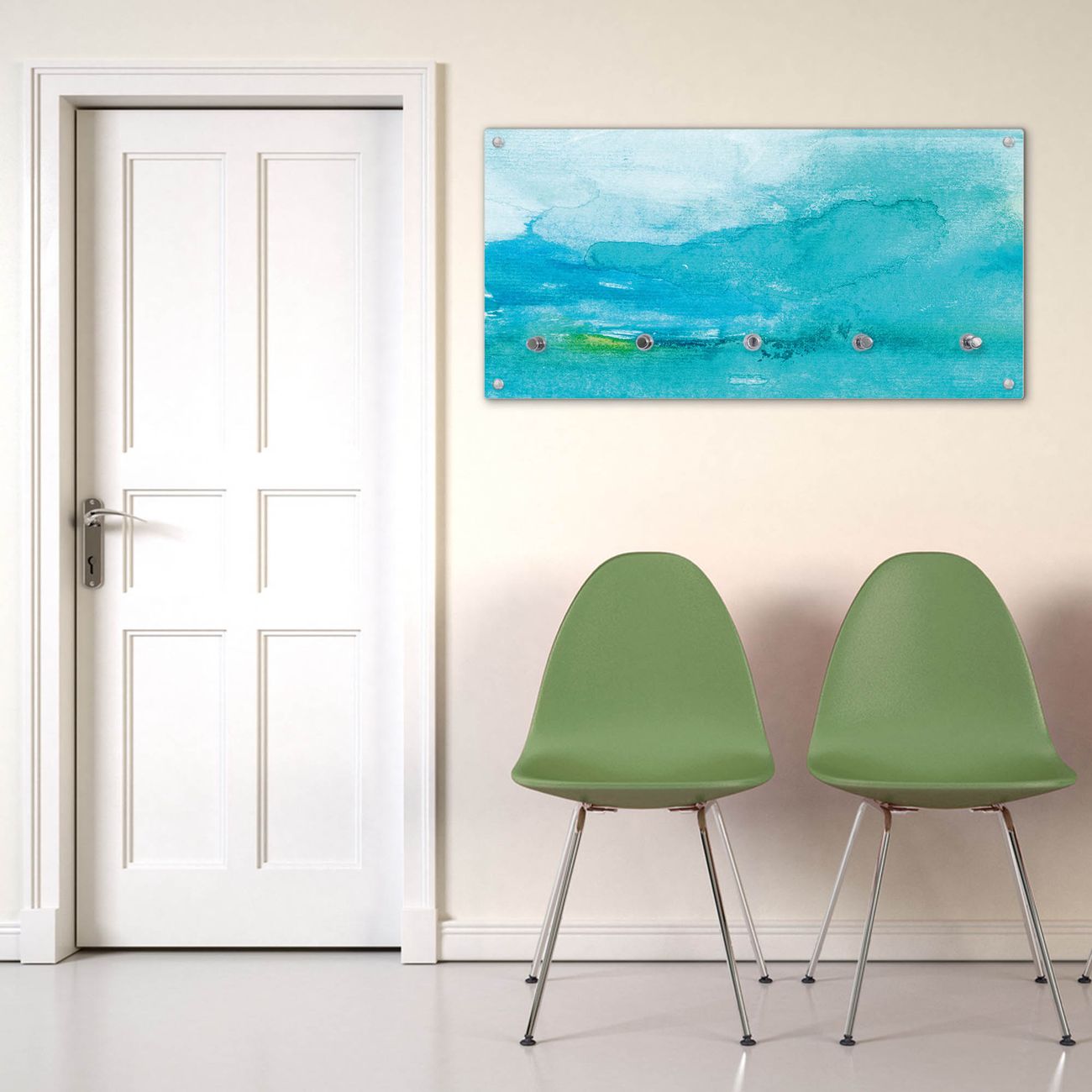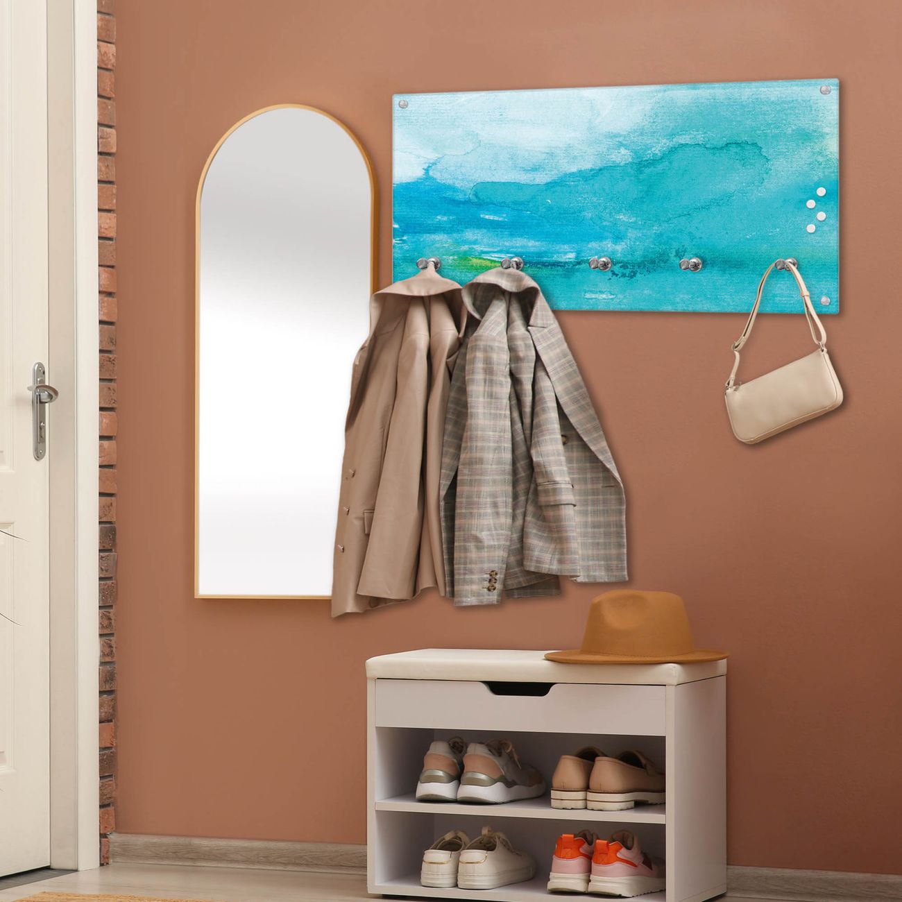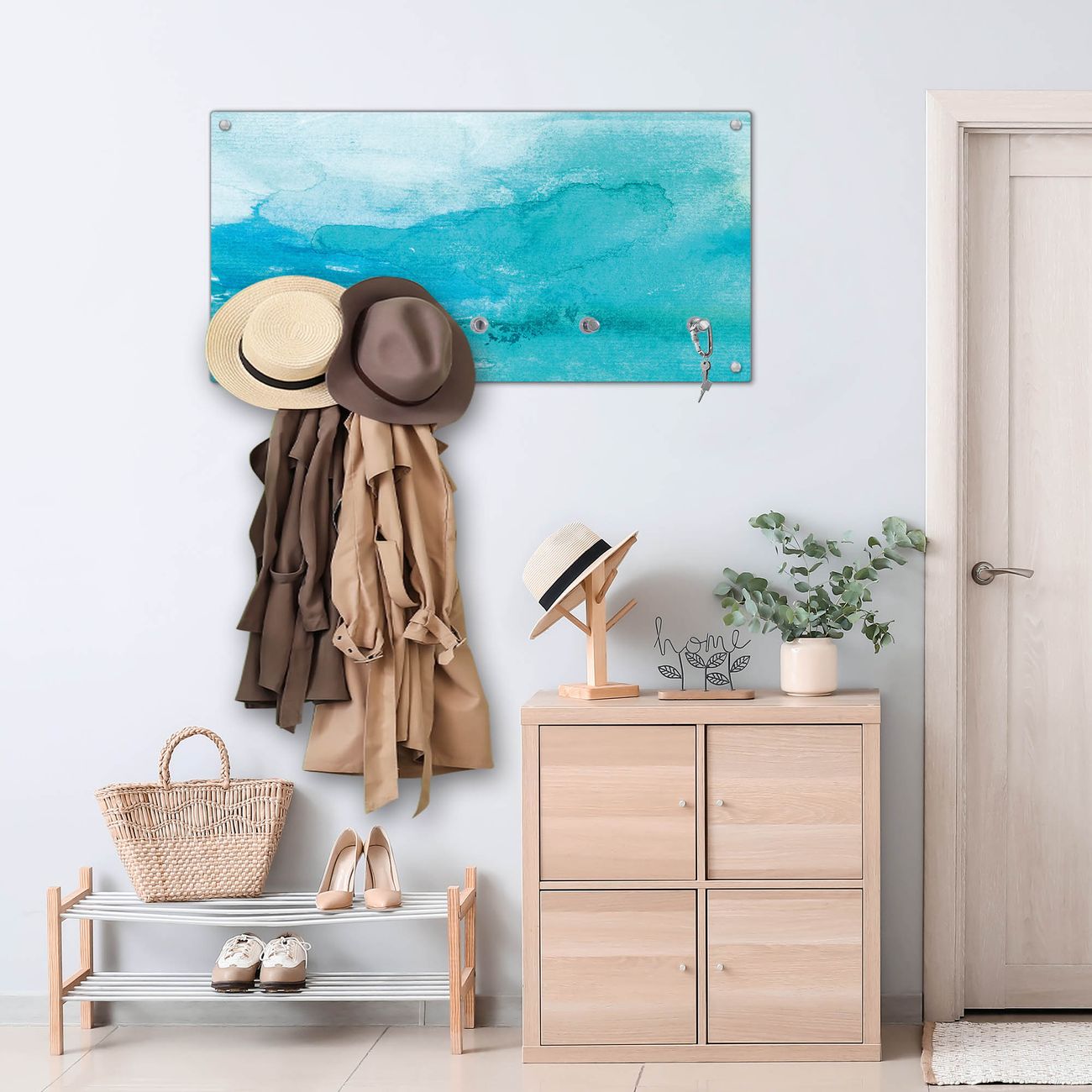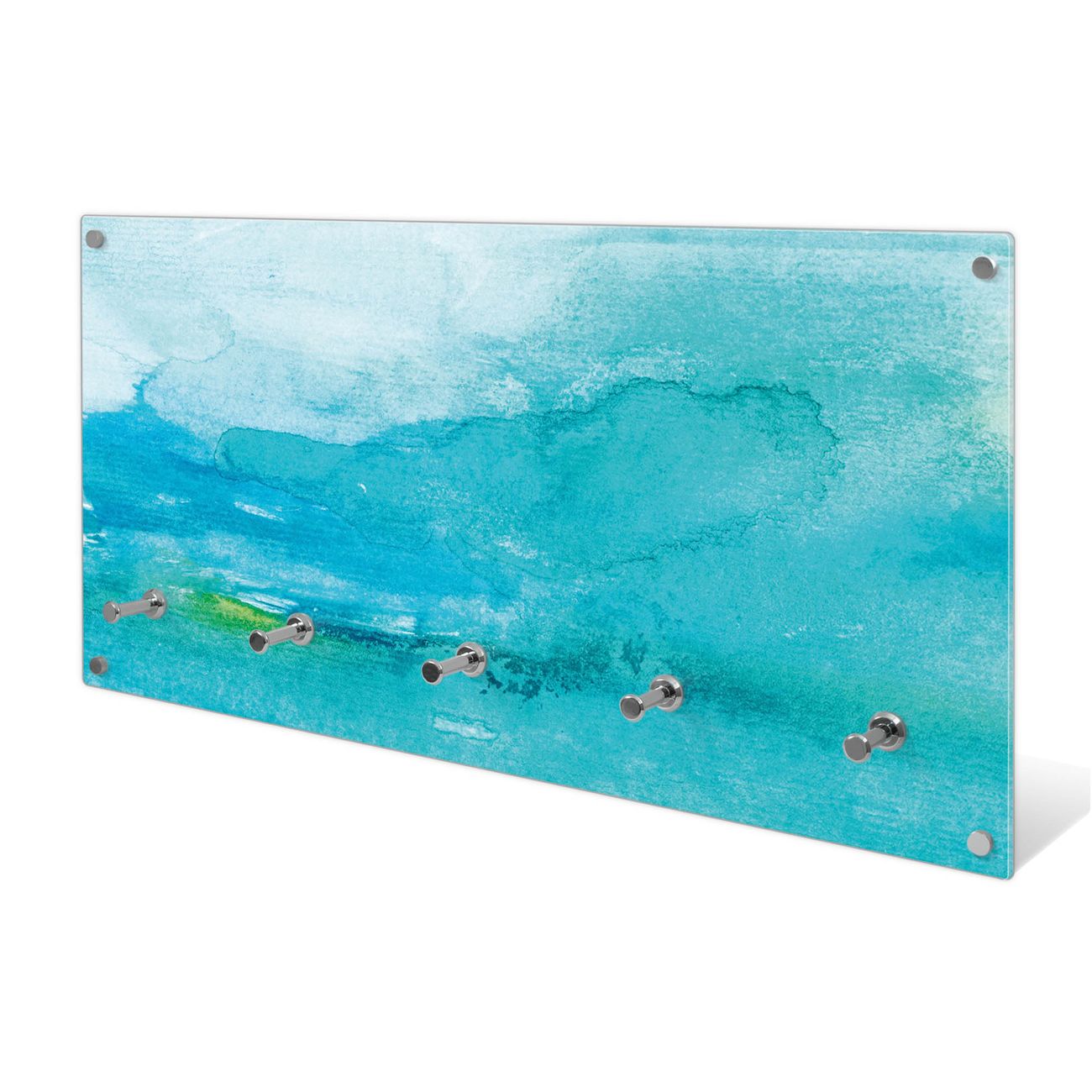 Wandgarderobe Glas 80x40cm Motiv Aquarell Blau