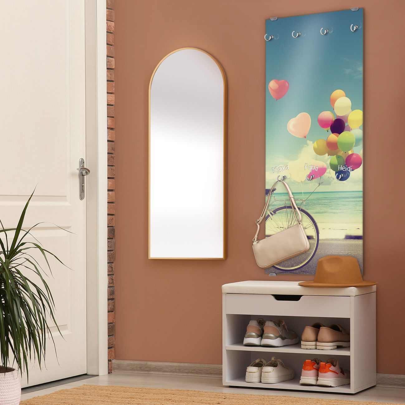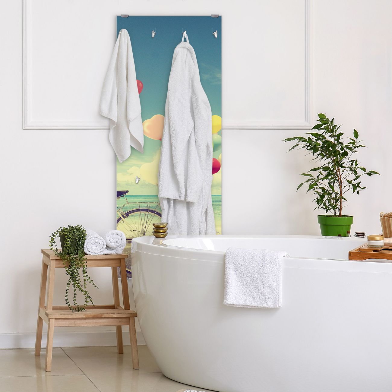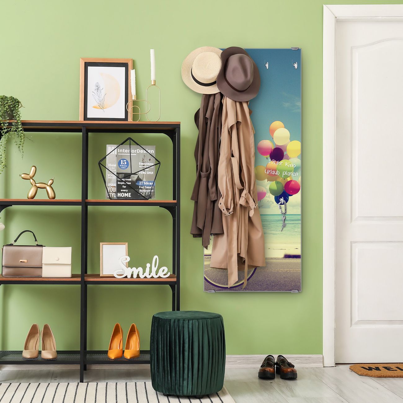 FUNKTION: Die banjado Wandgarderobe mit Motiv Auf Und Davon ist Ihr täglicher Begleiter. Zuverlässig hängen hier Ihre Jacken und Mäntel griffbereit. Das Echtglas ist Ihr Paneel auch beschreibbar und wieder abwischbar. DESIGN: Sie erhalten eine Garderobenleiste aus elegantem Echtglas mit dem Farbbrillanten Motiv Auf Und Davon hinterklebt. Das Design ist zeitlos klassisch, ohne dabei auf Funktionalität zu verzichten. Suchen Sie aus einer Vielzahl von Motiven das für Ihre Einrichtung Passende aus. DETAILS: Die Flurgarderobe besteht aus 4mm gehärtetem Sicherheitsglas. Sie ist 50cm breit, 125cm hoch und 6cm tief. Die Garderobenhaken zur Selbstmontage präsentieren sich in Edelstahl-Optik, ebenso die Abstandshalter für die Wandmontage. Ihre neue Garderobe ist sofort einsatzbereit. NUTZEN: Ihre neue Garderobe hält nicht nur zuverlässig Ihre Kleidung, sie ist auch optisch ein Blickfang. Durch das Glas können Sie an der Garderobe mit wasserlöslichen Kreidestiften oder Whiteboard-Markern auch Nachrichten hinterlassen. BANJADO: Wir sind ein kleines kreatives Team aus Sachsen und entwickeln Produkte die Design und Funktionalität verbinden sollen. Viel Freude mit Ihrer neuen Garderobe wünscht das banjado-Team!
