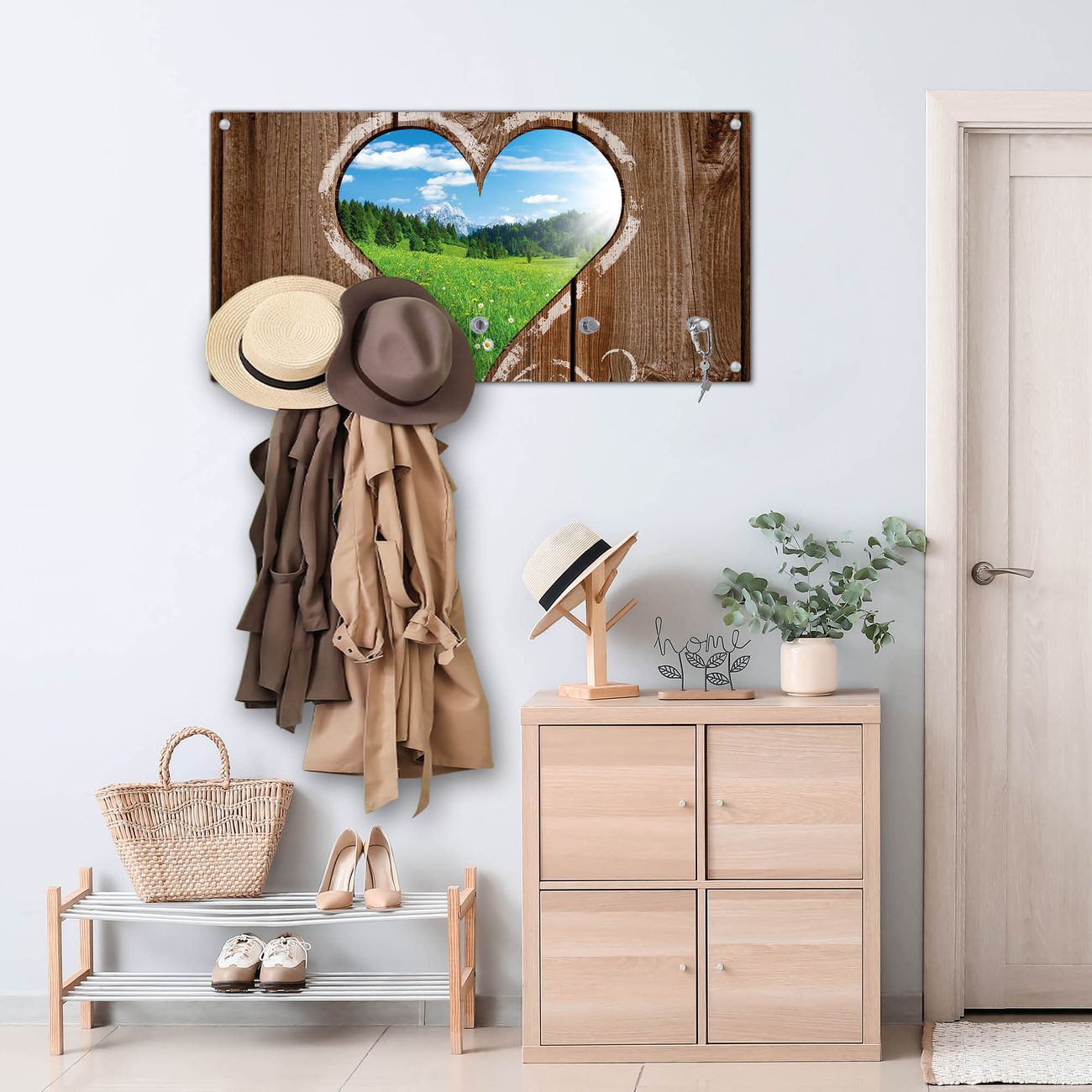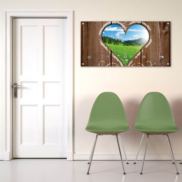 Wandgarderobe Glas 80x40cm Motiv Ausblick mit Herz