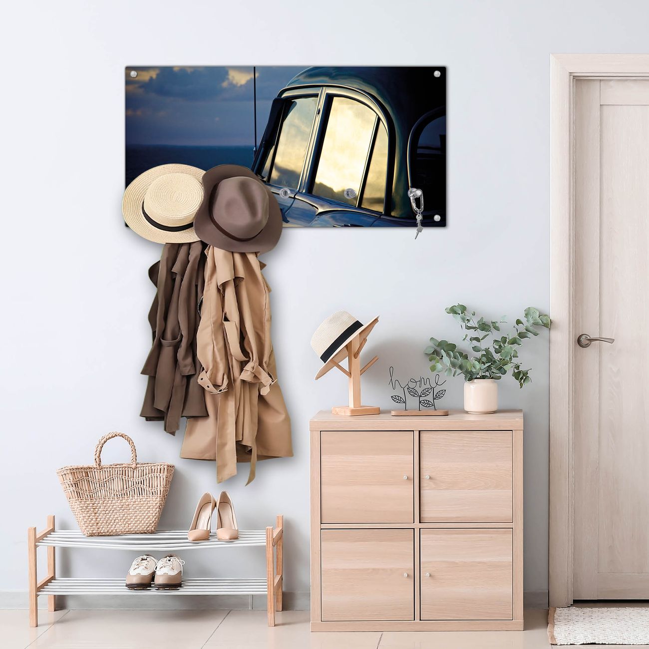 Wandgarderobe Glas 80x40cm Motiv Auto am Strand