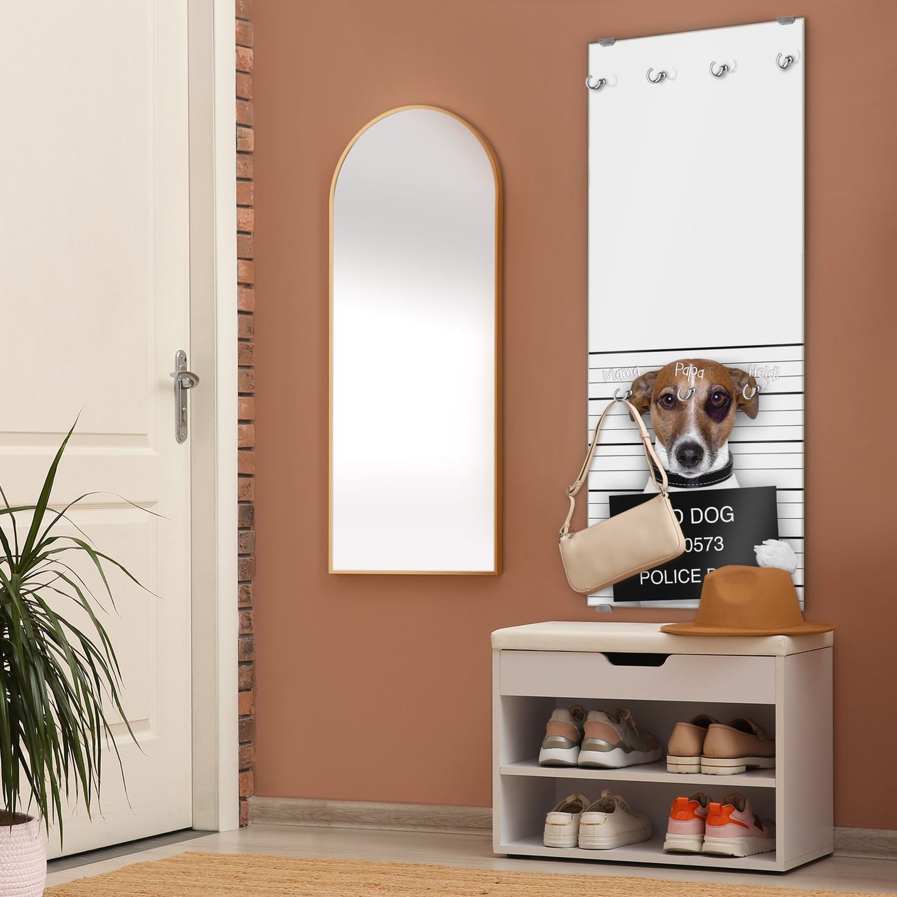 Flurgarderobe Glas 50x125cm Motiv Bad Dog Jack Russel