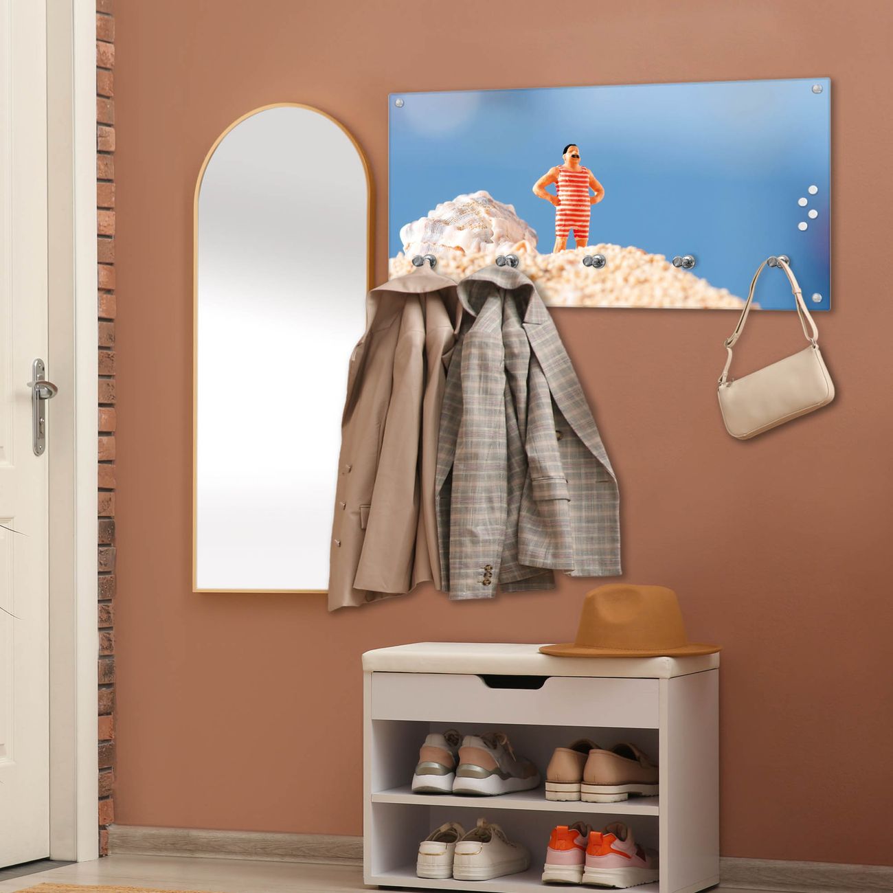 Wandgarderobe Glas 80x40cm Motiv Bademeister