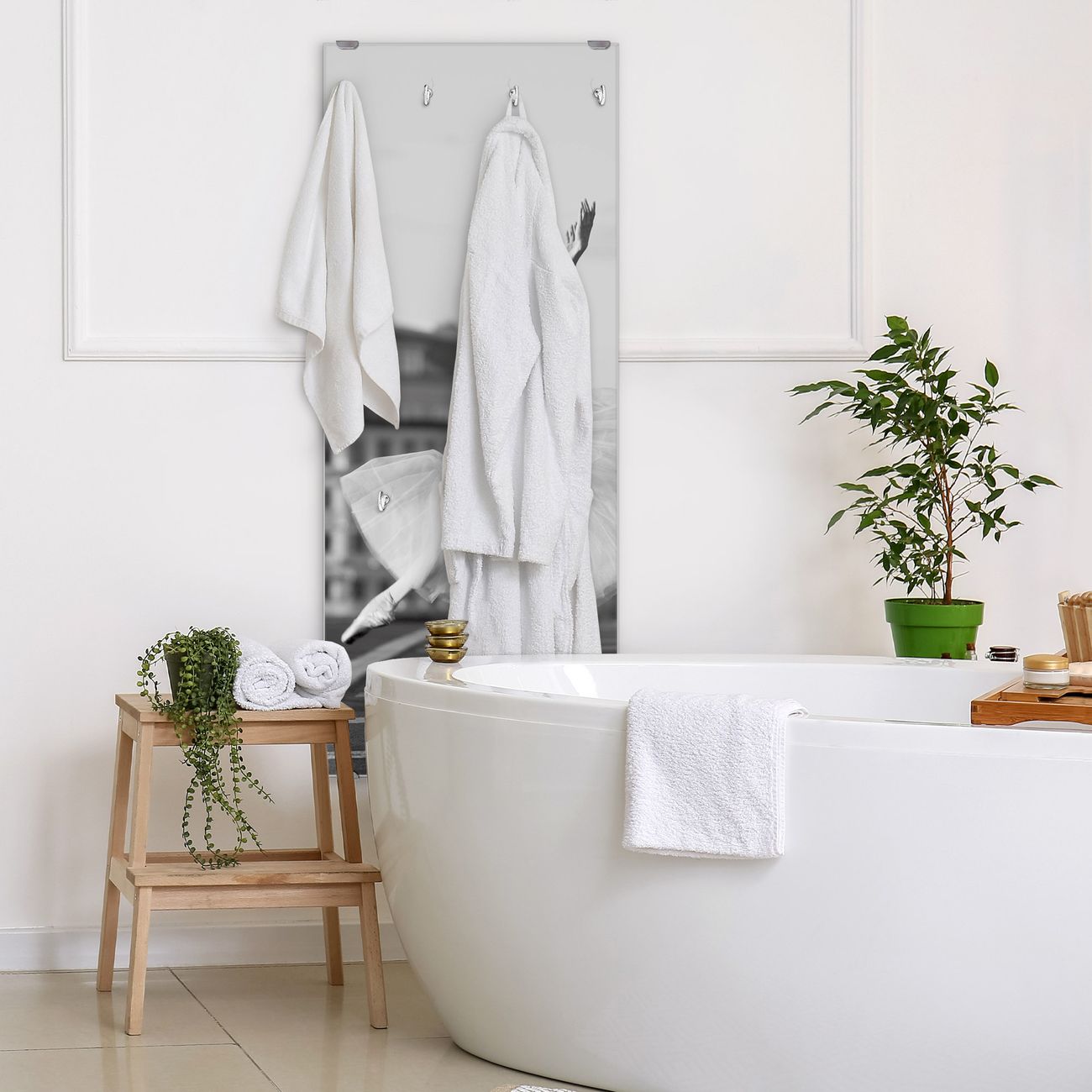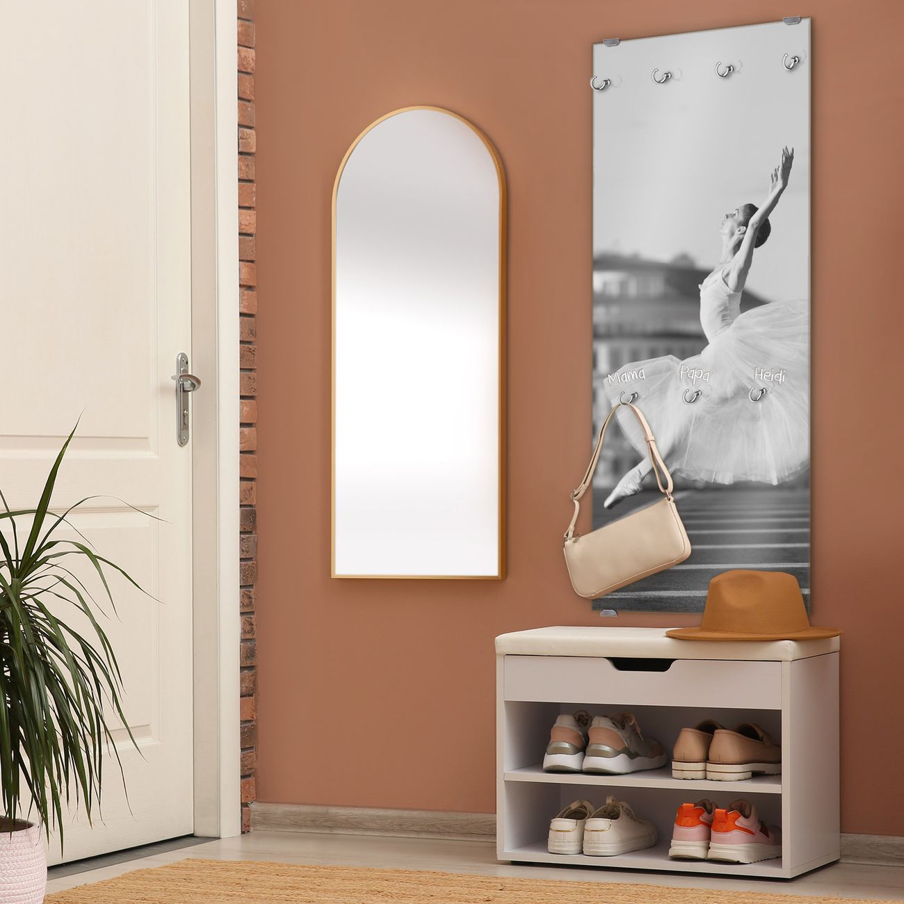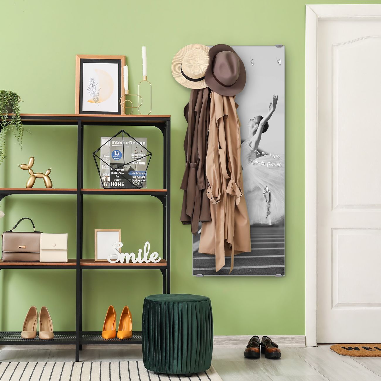 FUNKTION: Die banjado Wandgarderobe mit Motiv Ballerina In Moskau ist Ihr täglicher Begleiter. Zuverlässig hängen hier Ihre Jacken und Mäntel griffbereit. Das Echtglas ist Ihr Paneel auch beschreibbar und wieder abwischbar. DESIGN: Sie erhalten eine Garderobenleiste aus elegantem Echtglas mit dem Farbbrillanten Motiv Ballerina In Moskau hinterklebt. Das Design ist zeitlos klassisch, ohne dabei auf Funktionalität zu verzichten. Suchen Sie aus einer Vielzahl von Motiven das für Ihre Einrichtung Passende aus. DETAILS: Die Flurgarderobe besteht aus 4mm gehärtetem Sicherheitsglas. Sie ist 50cm breit, 125cm hoch und 6cm tief. Die Garderobenhaken zur Selbstmontage präsentieren sich in Edelstahl-Optik, ebenso die Abstandshalter für die Wandmontage. Ihre neue Garderobe ist sofort einsatzbereit. NUTZEN: Ihre neue Garderobe hält nicht nur zuverlässig Ihre Kleidung, sie ist auch optisch ein Blickfang. Durch das Glas können Sie an der Garderobe mit wasserlöslichen Kreidestiften oder Whiteboard-Markern auch Nachrichten hinterlassen. BANJADO: Wir sind ein kleines kreatives Team aus Sachsen und entwickeln Produkte die Design und Funktionalität verbinden sollen. Viel Freude mit Ihrer neuen Garderobe wünscht das banjado-Team!
