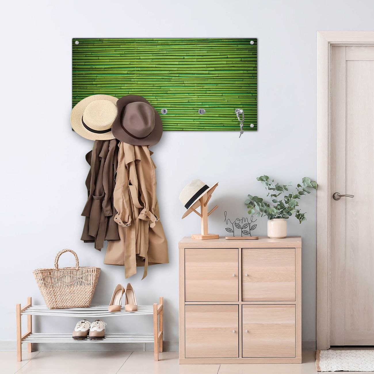 Wandgarderobe Glas 80x40cm Motiv Bambus Grün