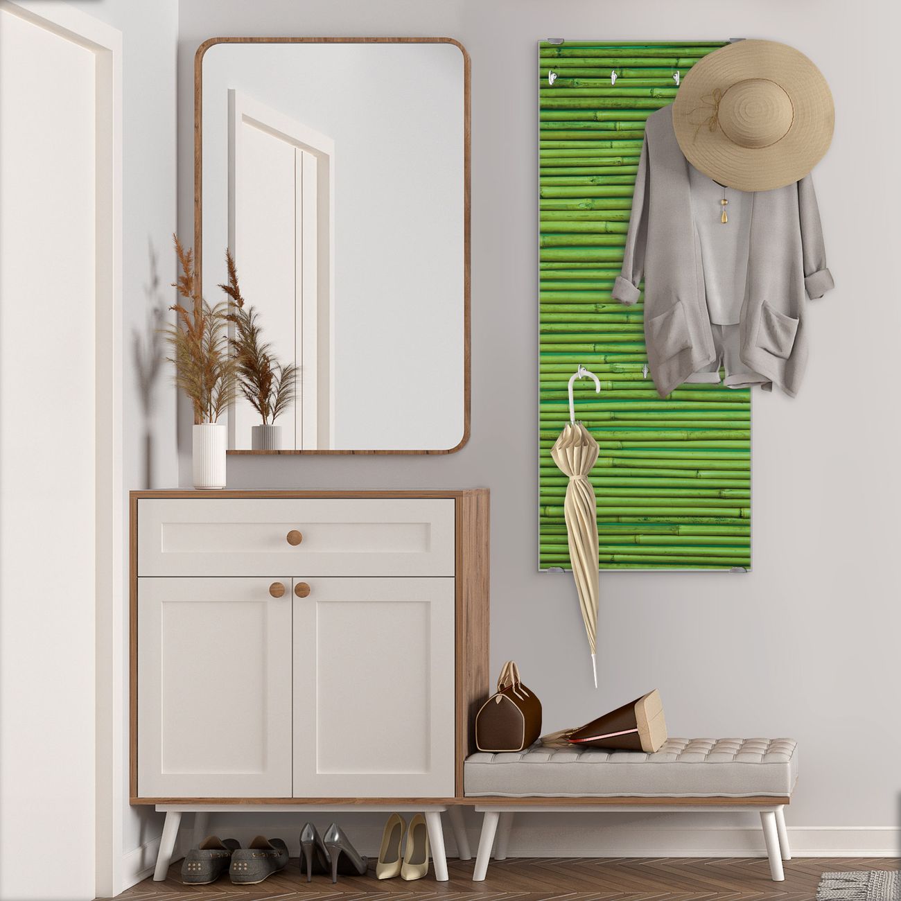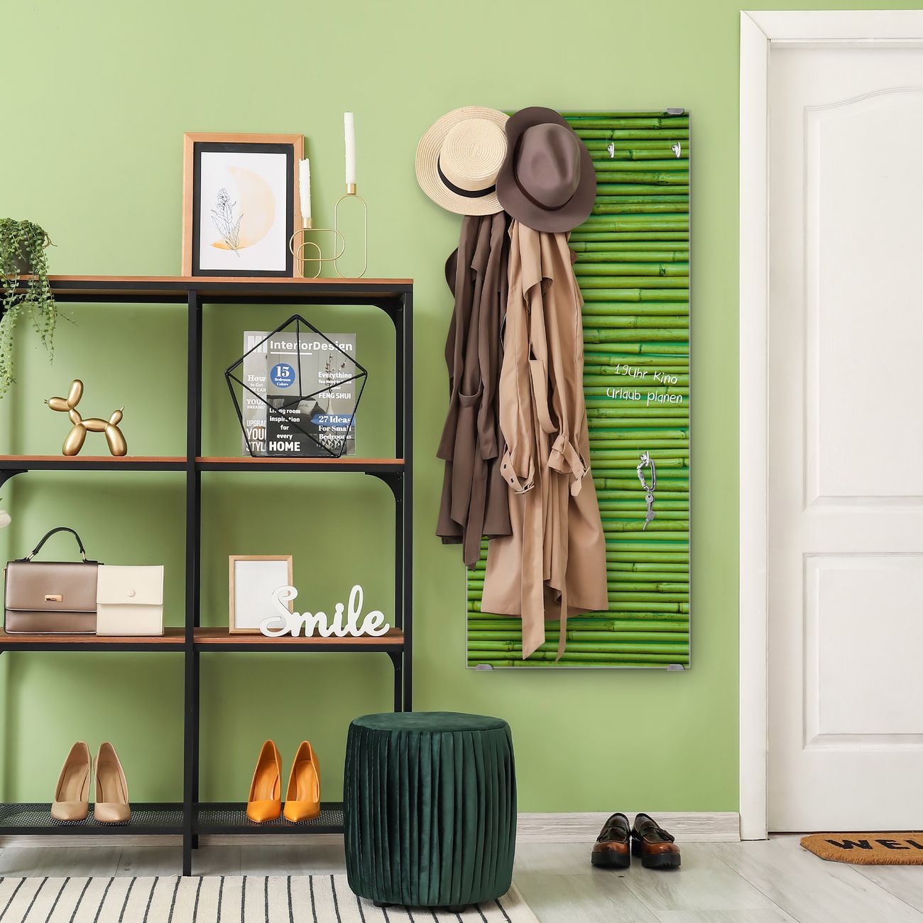 Flurgarderobe Glas 50x125cm Motiv Bambus Grün