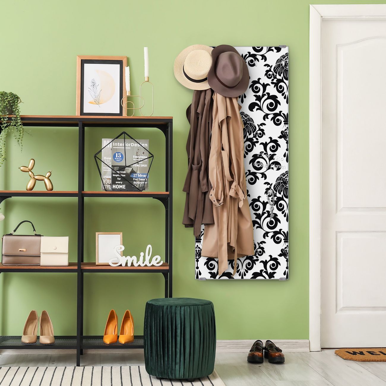 FUNKTION: Die banjado Wandgarderobe mit Motiv Barock ist Ihr täglicher Begleiter. Zuverlässig hängen hier Ihre Jacken und Mäntel griffbereit. Das Echtglas ist Ihr Paneel auch beschreibbar und wieder abwischbar. DESIGN: Sie erhalten eine Garderobenleiste aus elegantem Echtglas mit dem Farbbrillanten Motiv Barock hinterklebt. Das Design ist zeitlos klassisch, ohne dabei auf Funktionalität zu verzichten. Suchen Sie aus einer Vielzahl von Motiven das für Ihre Einrichtung Passende aus. DETAILS: Die Flurgarderobe besteht aus 4mm gehärtetem Sicherheitsglas. Sie ist 50cm breit, 125cm hoch und 6cm tief. Die Garderobenhaken zur Selbstmontage präsentieren sich in Edelstahl-Optik, ebenso die Abstandshalter für die Wandmontage. Ihre neue Garderobe ist sofort einsatzbereit. NUTZEN: Ihre neue Garderobe hält nicht nur zuverlässig Ihre Kleidung, sie ist auch optisch ein Blickfang. Durch das Glas können Sie an der Garderobe mit wasserlöslichen Kreidestiften oder Whiteboard-Markern auch Nachrichten hinterlassen. BANJADO: Wir sind ein kleines kreatives Team aus Sachsen und entwickeln Produkte die Design und Funktionalität verbinden sollen. Viel Freude mit Ihrer neuen Garderobe wünscht das banjado-Team!