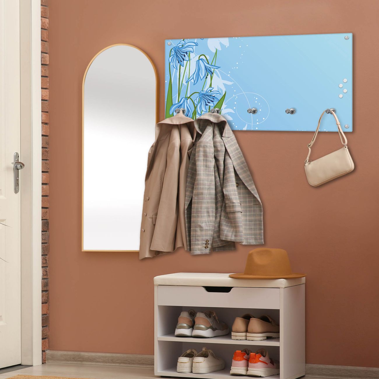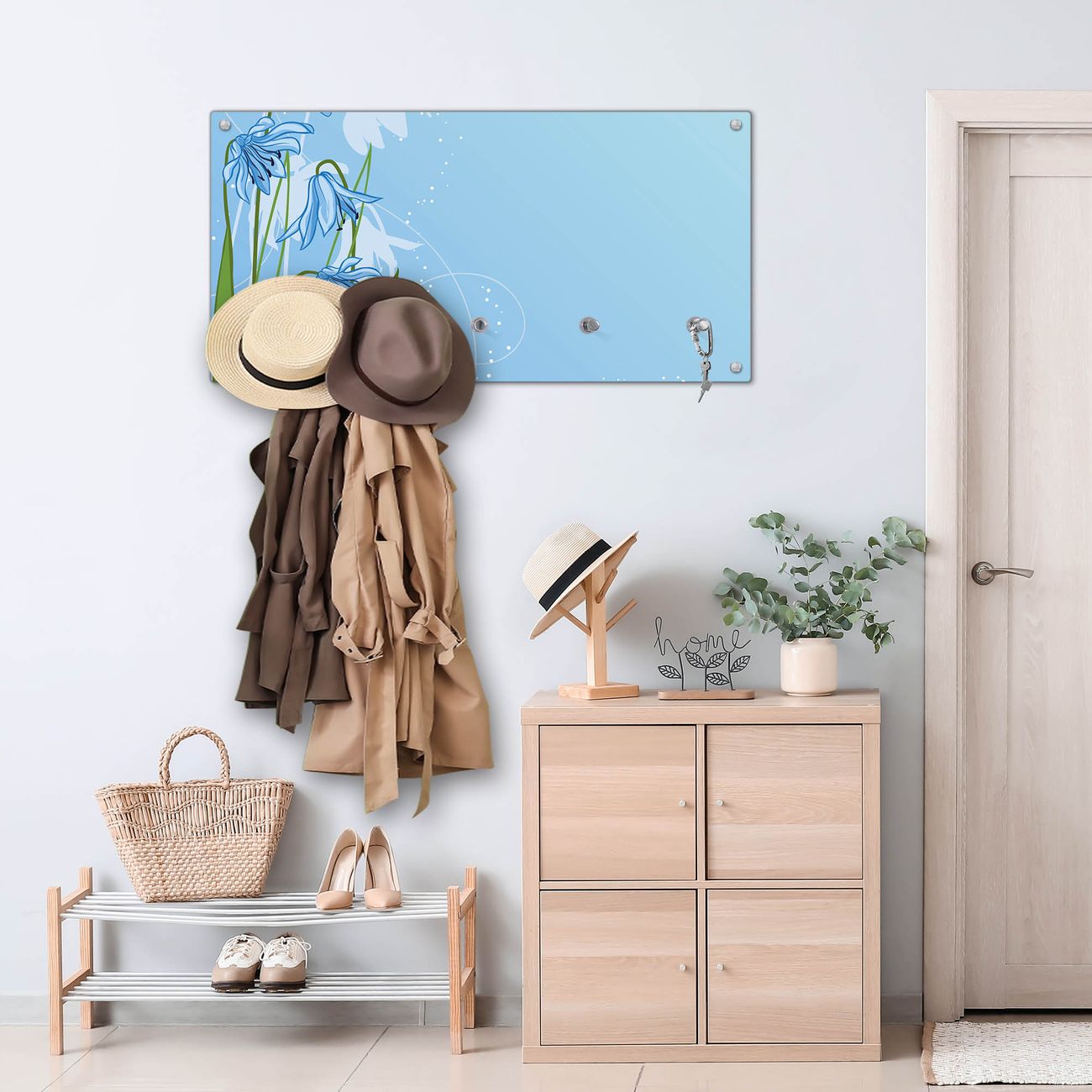 Wandgarderobe Glas 80x40cm Motiv Bergblaulilie