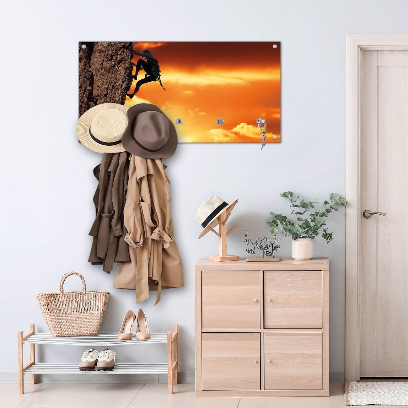 Wandgarderobe Glas 80x40cm Motiv Bergsteiger