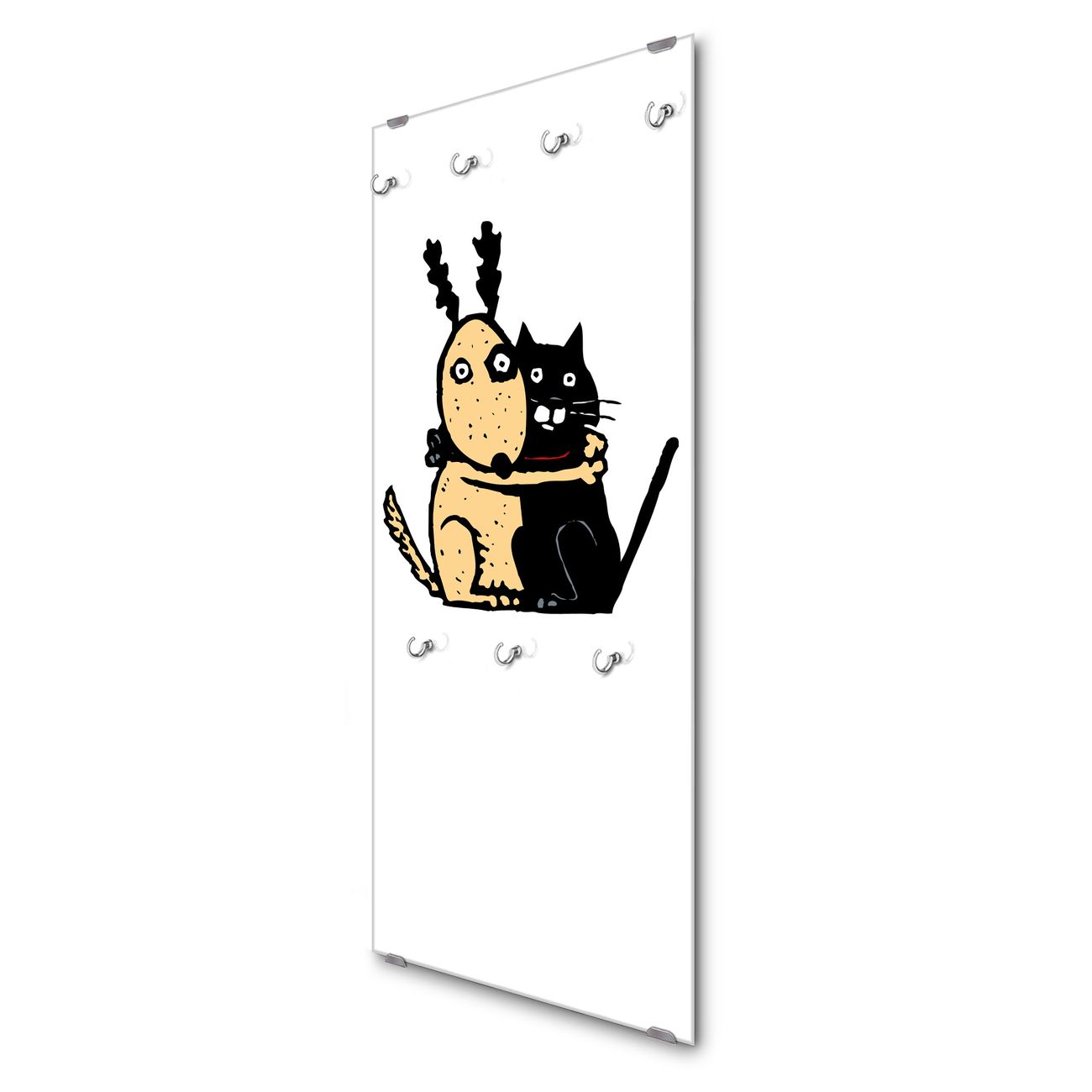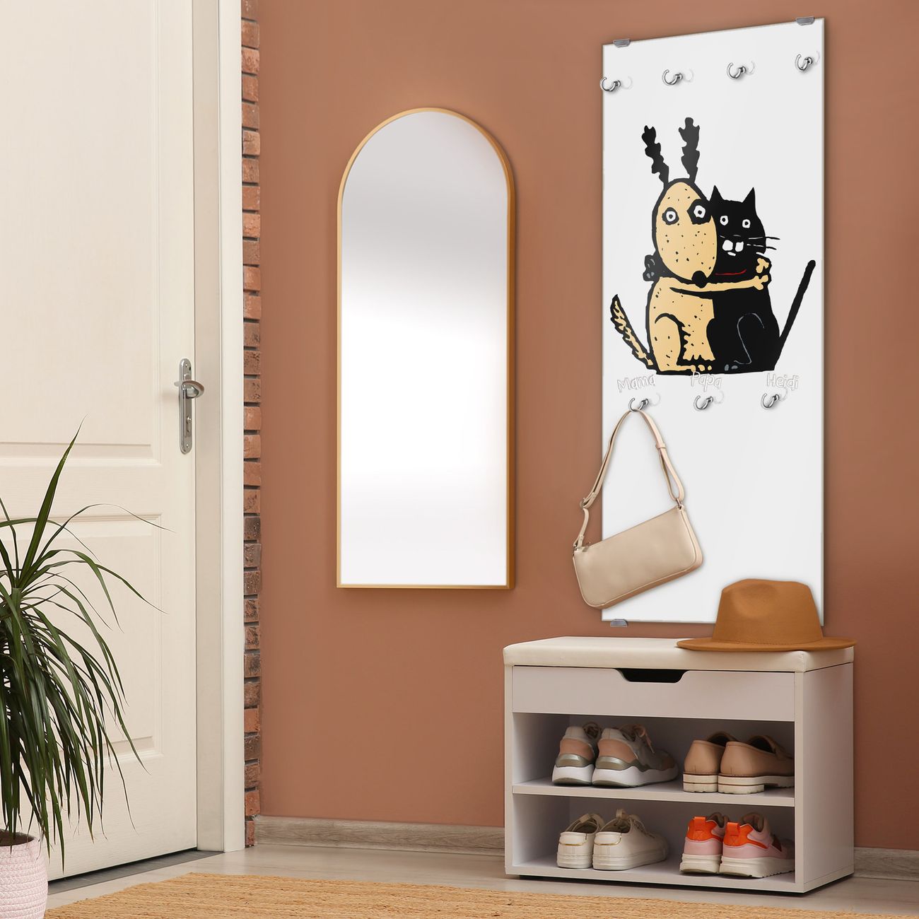 FUNKTION: Die banjado Wandgarderobe mit Motiv Beste Freunde Immer ist Ihr täglicher Begleiter. Zuverlässig hängen hier Ihre Jacken und Mäntel griffbereit. Das Echtglas ist Ihr Paneel auch beschreibbar und wieder abwischbar. DESIGN: Sie erhalten eine Garderobenleiste aus elegantem Echtglas mit dem Farbbrillanten Motiv Beste Freunde Immer hinterklebt. Das Design ist zeitlos klassisch, ohne dabei auf Funktionalität zu verzichten. Suchen Sie aus einer Vielzahl von Motiven das für Ihre Einrichtung Passende aus. DETAILS: Die Flurgarderobe besteht aus 4mm gehärtetem Sicherheitsglas. Sie ist 50cm breit, 125cm hoch und 6cm tief. Die Garderobenhaken zur Selbstmontage präsentieren sich in Edelstahl-Optik, ebenso die Abstandshalter für die Wandmontage. Ihre neue Garderobe ist sofort einsatzbereit. NUTZEN: Ihre neue Garderobe hält nicht nur zuverlässig Ihre Kleidung, sie ist auch optisch ein Blickfang. Durch das Glas können Sie an der Garderobe mit wasserlöslichen Kreidestiften oder Whiteboard-Markern auch Nachrichten hinterlassen. BANJADO: Wir sind ein kleines kreatives Team aus Sachsen und entwickeln Produkte die Design und Funktionalität verbinden sollen. Viel Freude mit Ihrer neuen Garderobe wünscht das banjado-Team!