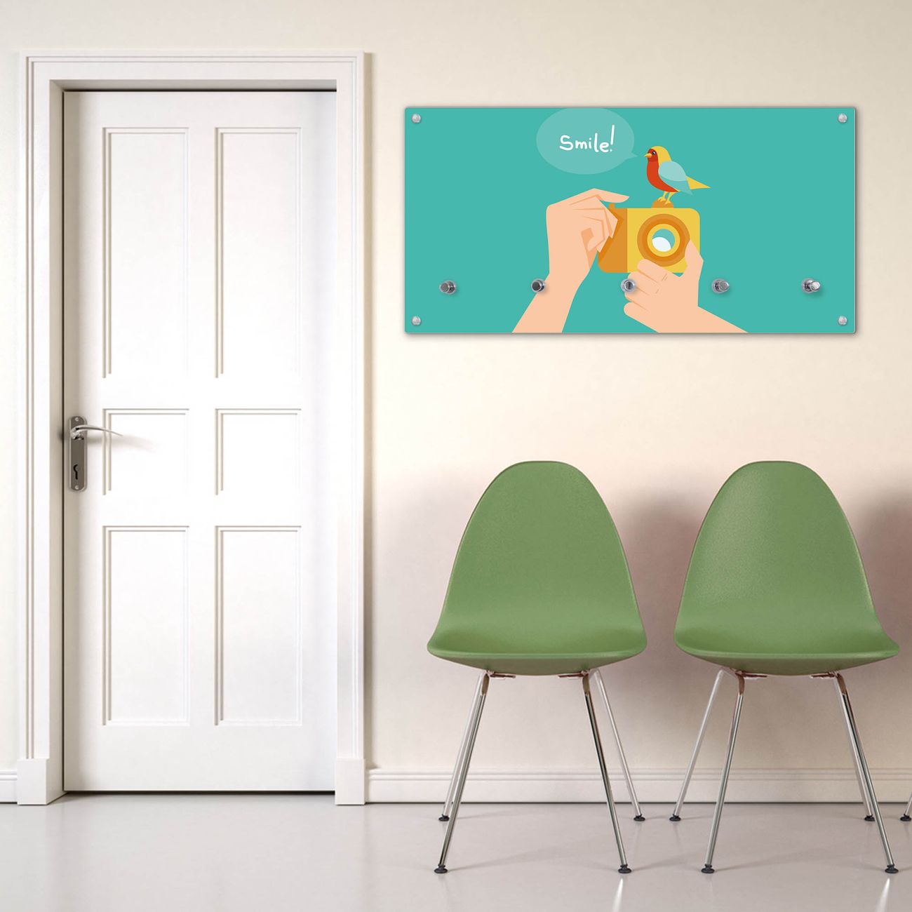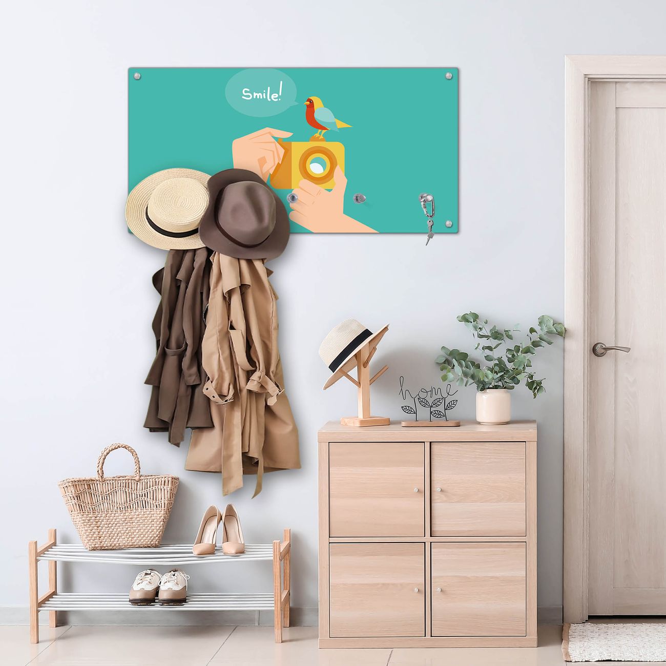 Wandgarderobe Glas 80x40cm Motiv Bitte Lächeln 2