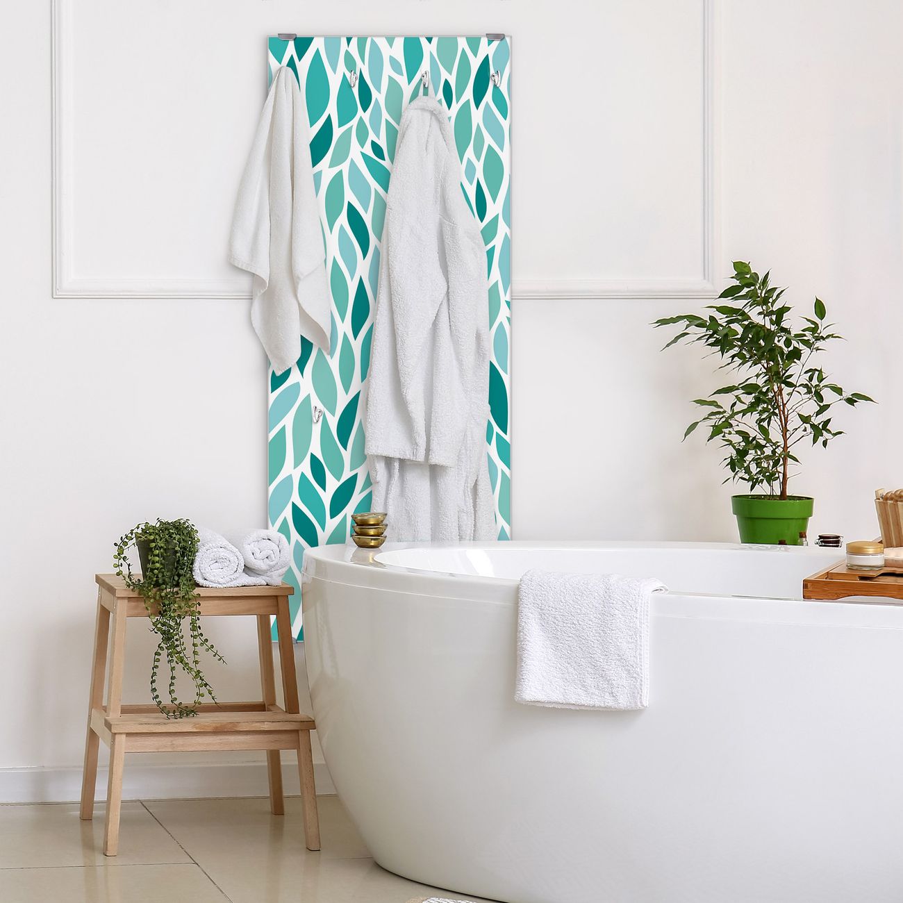 Flurgarderobe Glas 50x125cm Motiv Blätter Mint