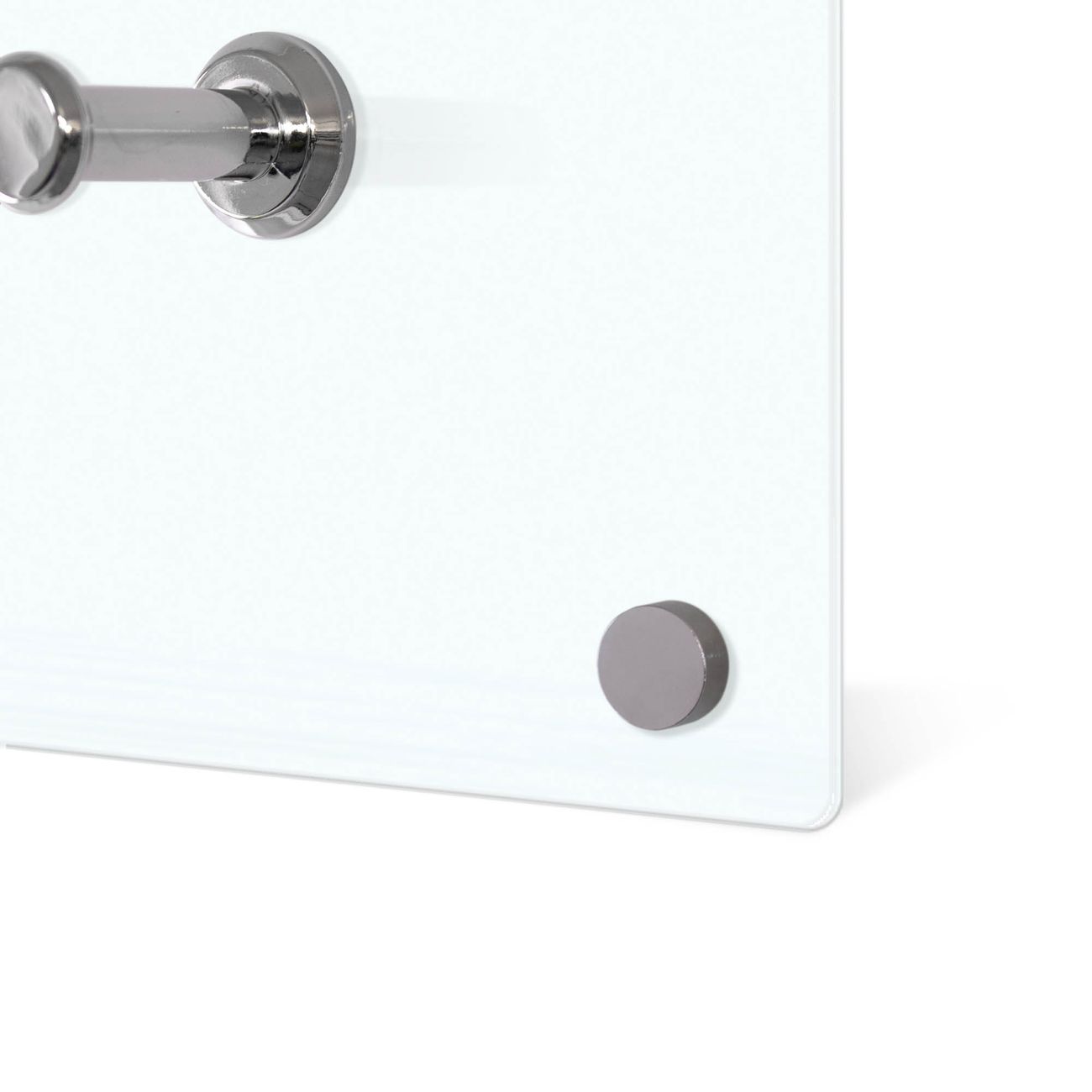 Bitte beachten Sie, dass an dieser Garderobe nur starke Neodym-Magnete halten! FUNKTION: Die banjado Wandgarderobe mit Motiv Blättertraum ist Ihr täglicher Begleiter. Zuverlässig hängen hier Ihre Jacken und Mäntel griffbereit. Gleichzeitig ist die Design Garderobe magnetisch, Sie können Notizen anheften und durch das Echtglas ist Ihr Paneel auch beschreibbar und wieder abwischbar. DESIGN: Sie erhalten eine Garderobenleiste aus elegantem Echtglas mit dem Farbbrillanten Motiv Blättertraum hinterklebt. Das Design ist zeitlos klassisch, ohne dabei auf Funktionalität zu verzichten. Suchen Sie aus einer Vielzahl von Motiven das für Ihre Einrichtung Passende aus. DETAILS: Die Flurgarderobe besteht aus 4mm gehärtetem Sicherheitsglas. Sie ist 80cm breit, 40cm hoch und 6cm tief. Die Garderobenhaken zur Selbstmontage präsentieren sich in Edelstahl-Optik, ebenso die Abstandshalter für die Wandmontage. Ihre neue Garderobe ist sofort einsatzbereit. NUTZEN: Ihre neue Garderobe hält nicht nur zuverlässig Ihre Kleidung, sie ist auch optisch ein Blickfang. Durch die magnetische Wirkung können Sie mit 4 beigefügten extrastarken Neodym-Magneten Notizen anheften und mit wasserlöslichen Kreidestiften oder Whiteboard-Markern auch Nachrichten hinterlassen. BANJADO: Wir sind ein kleines kreatives Team aus Sachsen und entwickeln Produkte die Design und Funktionalität verbinden sollen. Viel Freude mit Ihrer neuen Garderobe wünscht das banjado-Team!