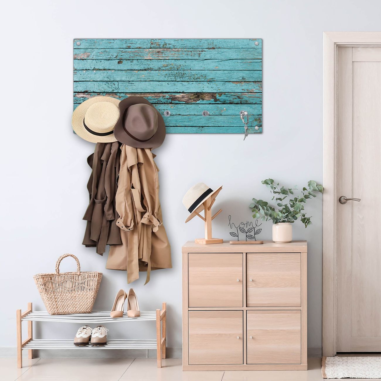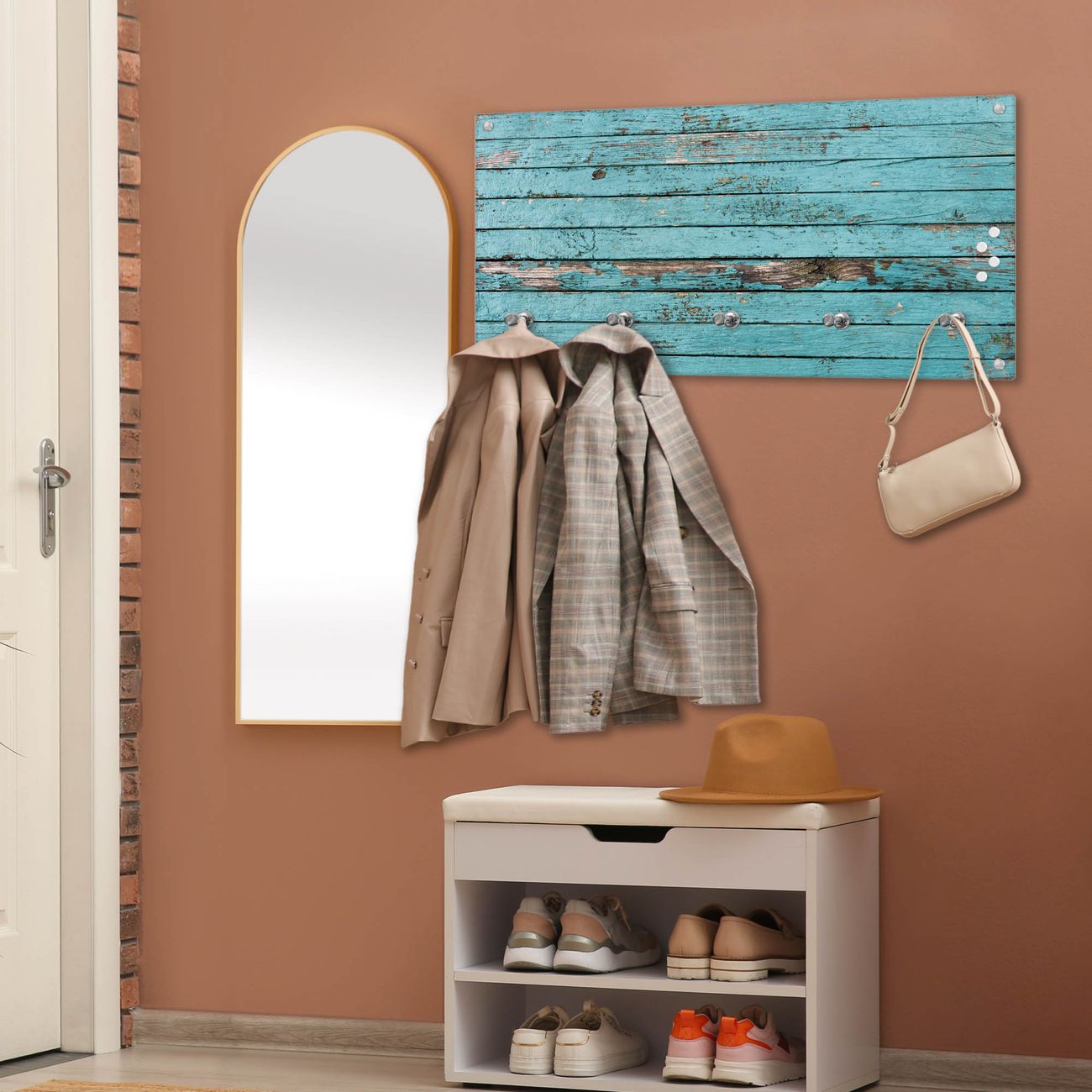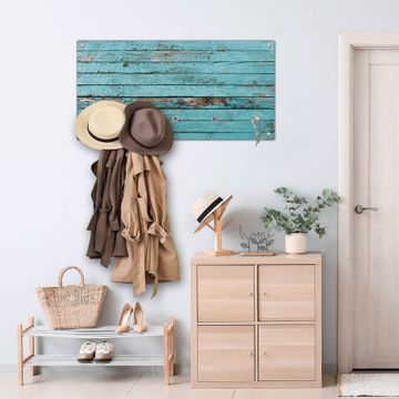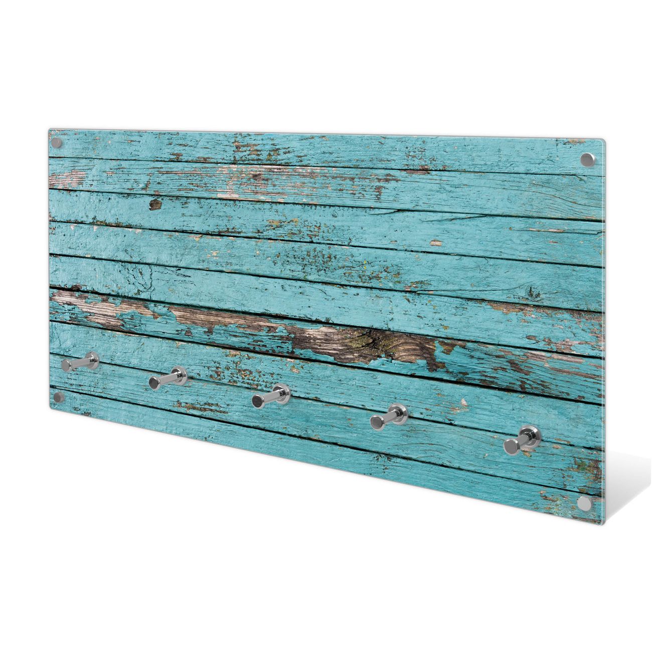 Wandgarderobe Glas 80x40cm Motiv Blaue Holzlatten