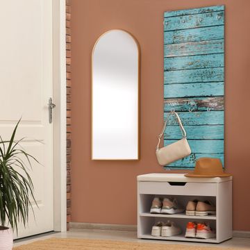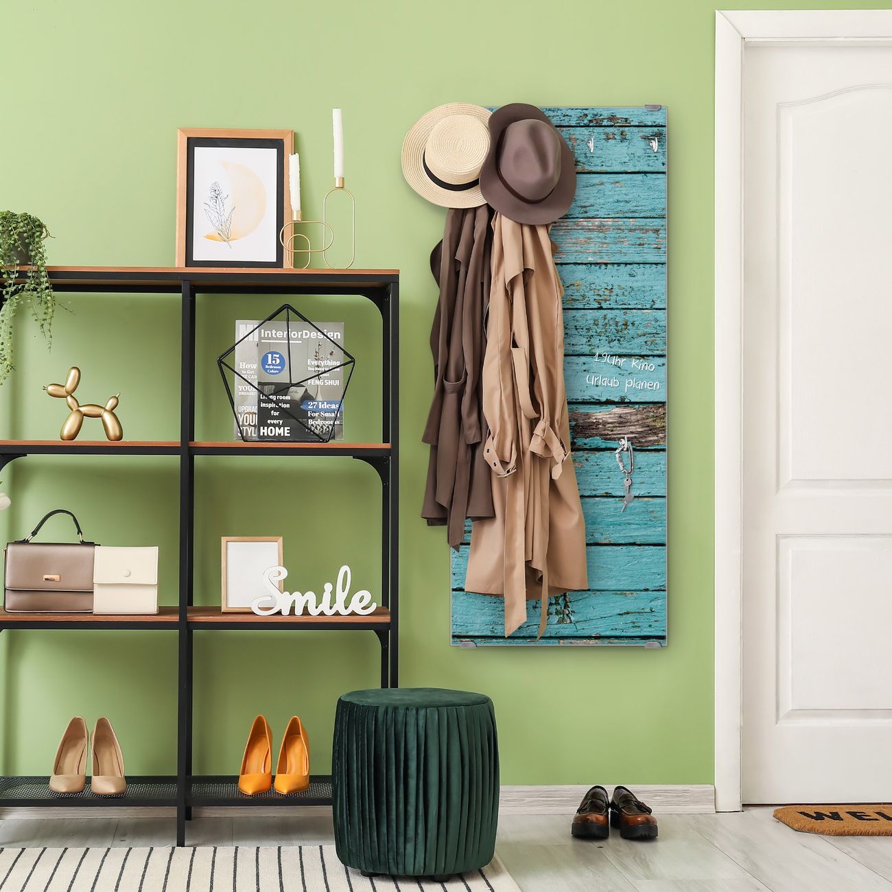 FUNKTION: Die banjado Wandgarderobe mit Motiv Blaue Holzlatten ist Ihr täglicher Begleiter. Zuverlässig hängen hier Ihre Jacken und Mäntel griffbereit. Das Echtglas ist Ihr Paneel auch beschreibbar und wieder abwischbar. DESIGN: Sie erhalten eine Garderobenleiste aus elegantem Echtglas mit dem Farbbrillanten Motiv Blaue Holzlatten hinterklebt. Das Design ist zeitlos klassisch, ohne dabei auf Funktionalität zu verzichten. Suchen Sie aus einer Vielzahl von Motiven das für Ihre Einrichtung Passende aus. DETAILS: Die Flurgarderobe besteht aus 4mm gehärtetem Sicherheitsglas. Sie ist 50cm breit, 125cm hoch und 6cm tief. Die Garderobenhaken zur Selbstmontage präsentieren sich in Edelstahl-Optik, ebenso die Abstandshalter für die Wandmontage. Ihre neue Garderobe ist sofort einsatzbereit. NUTZEN: Ihre neue Garderobe hält nicht nur zuverlässig Ihre Kleidung, sie ist auch optisch ein Blickfang. Durch das Glas können Sie an der Garderobe mit wasserlöslichen Kreidestiften oder Whiteboard-Markern auch Nachrichten hinterlassen. BANJADO: Wir sind ein kleines kreatives Team aus Sachsen und entwickeln Produkte die Design und Funktionalität verbinden sollen. Viel Freude mit Ihrer neuen Garderobe wünscht das banjado-Team!