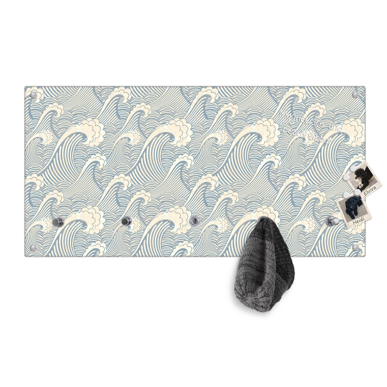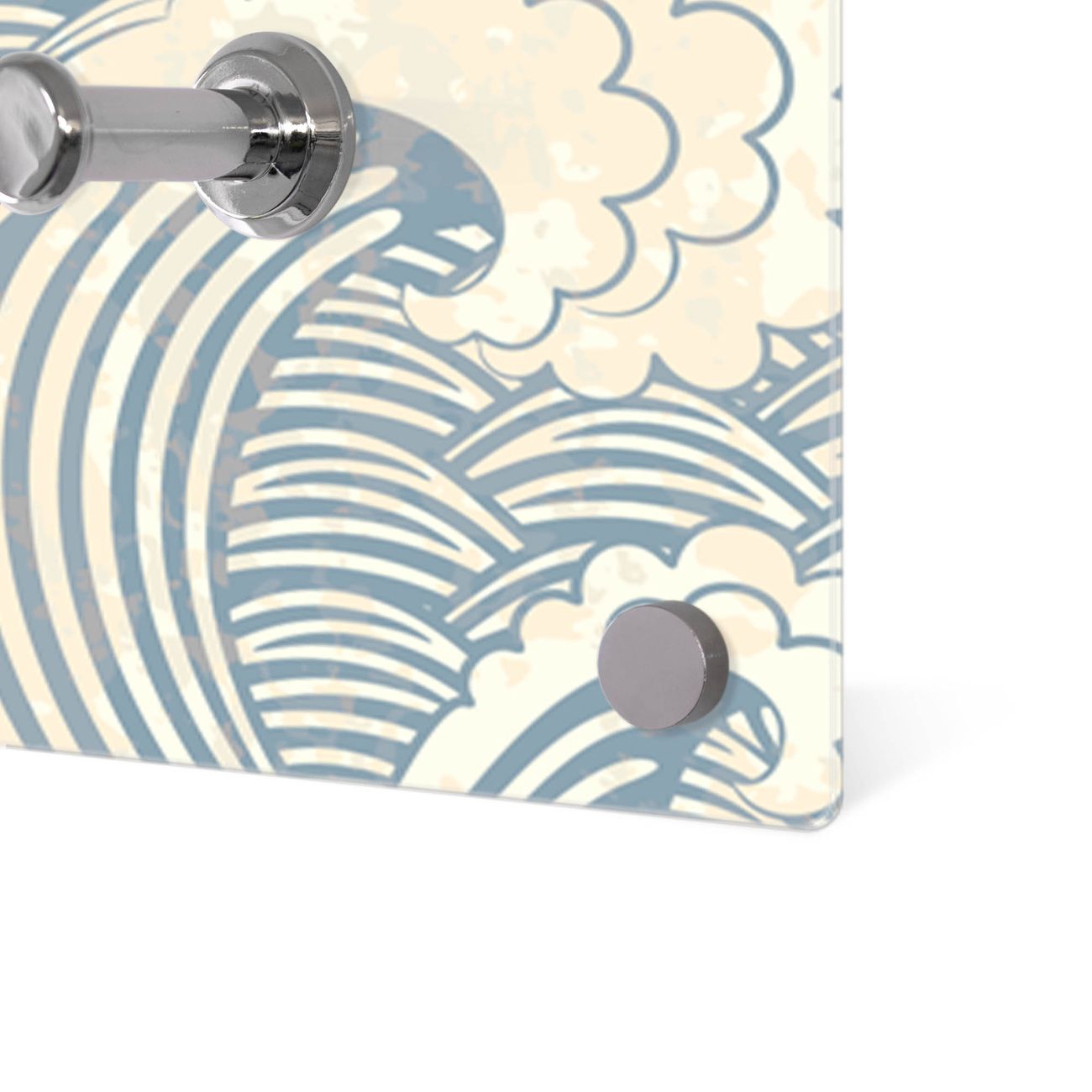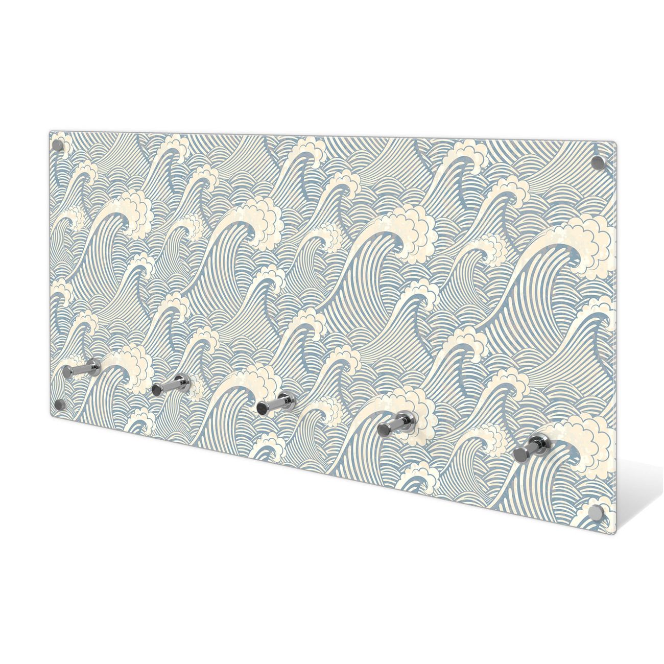 Wandgarderobe Glas 80x40cm Motiv Blaue Wellen