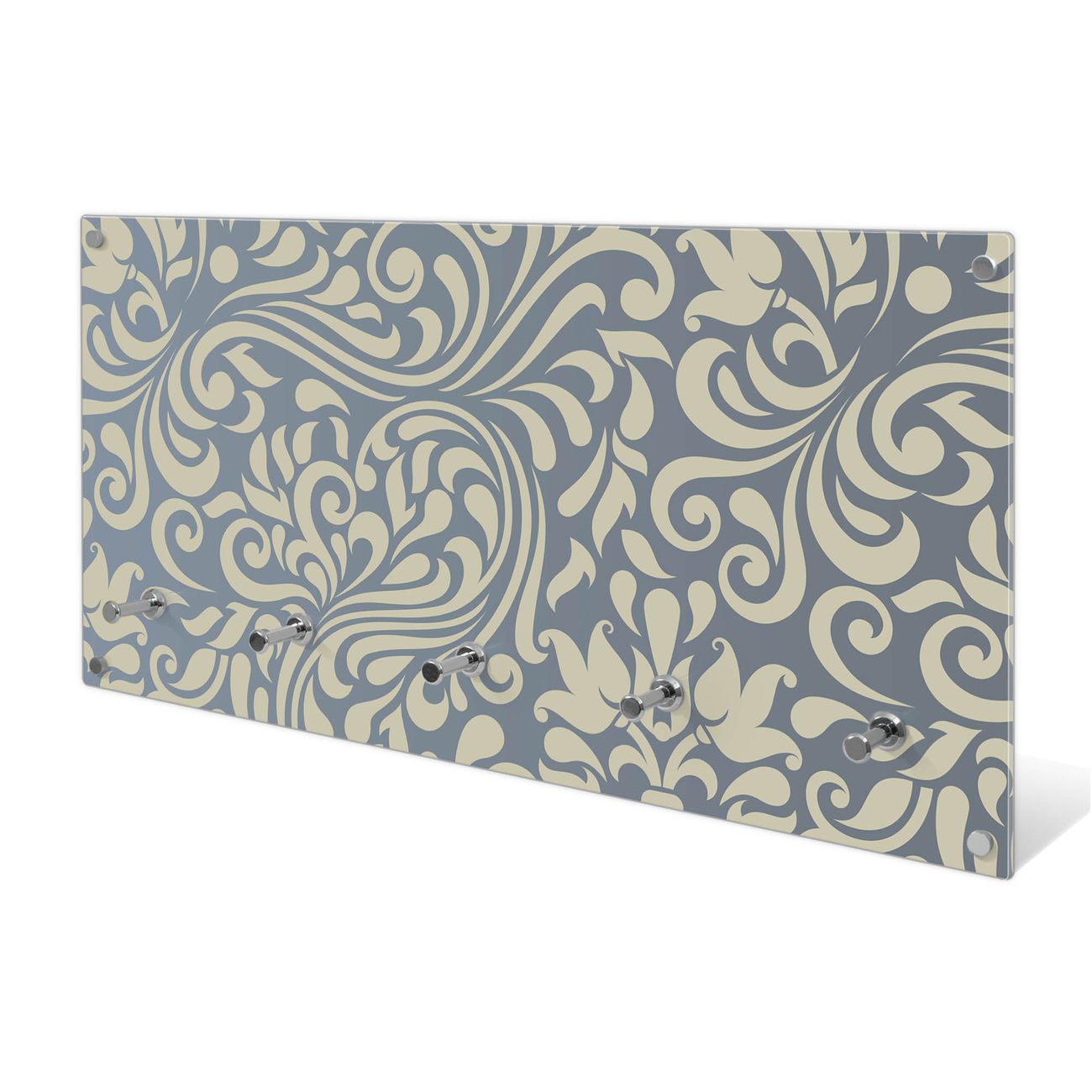 Wandgarderobe Glas 80x40cm Motiv Blaues Ornament