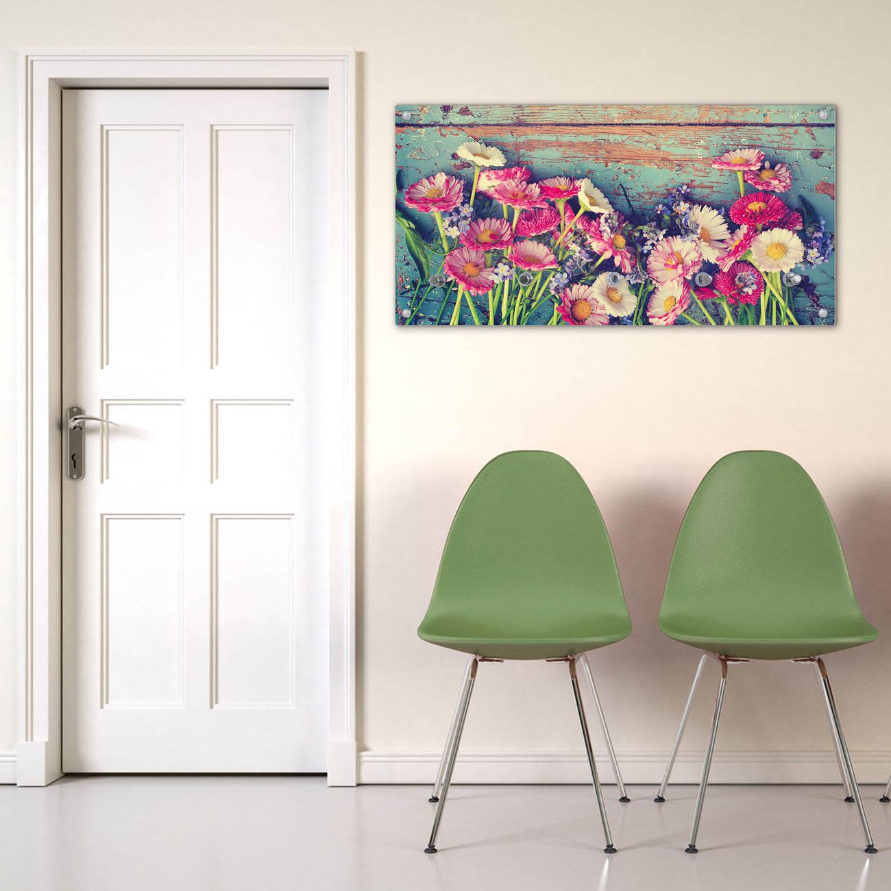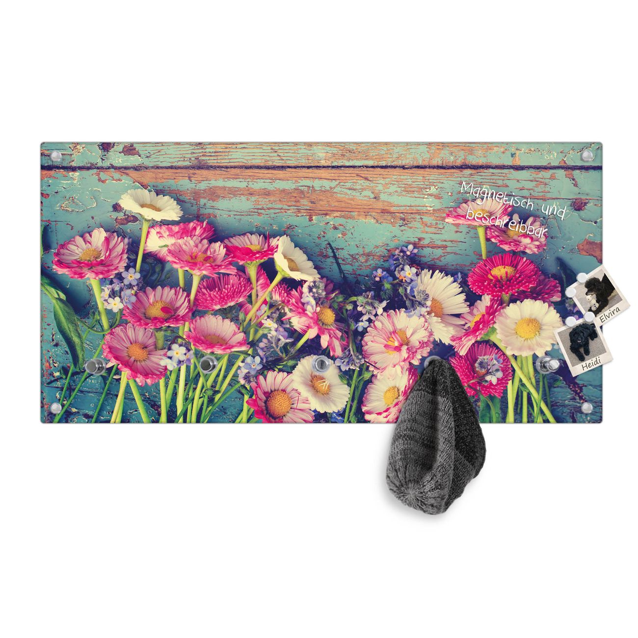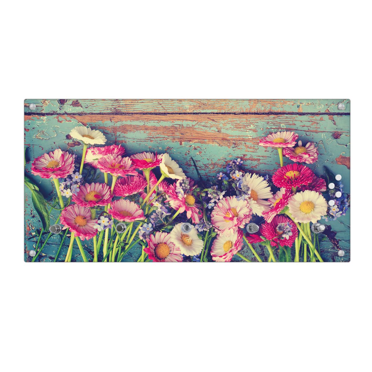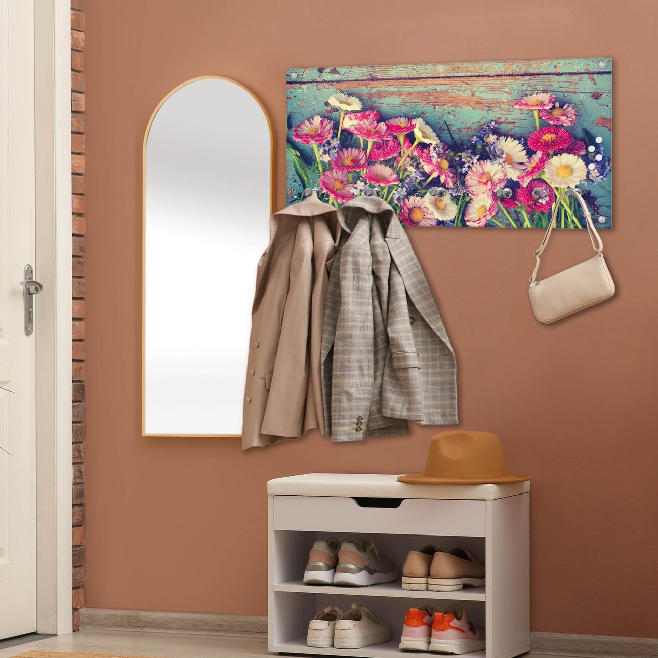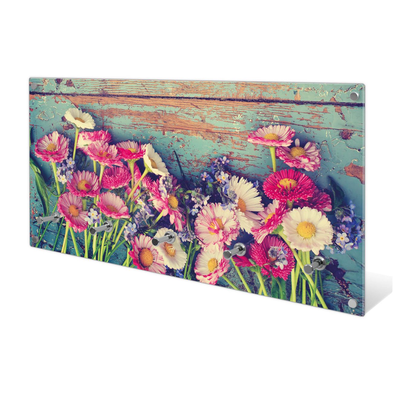 Wandgarderobe Glas 80x40cm Motiv Blumenpfücken