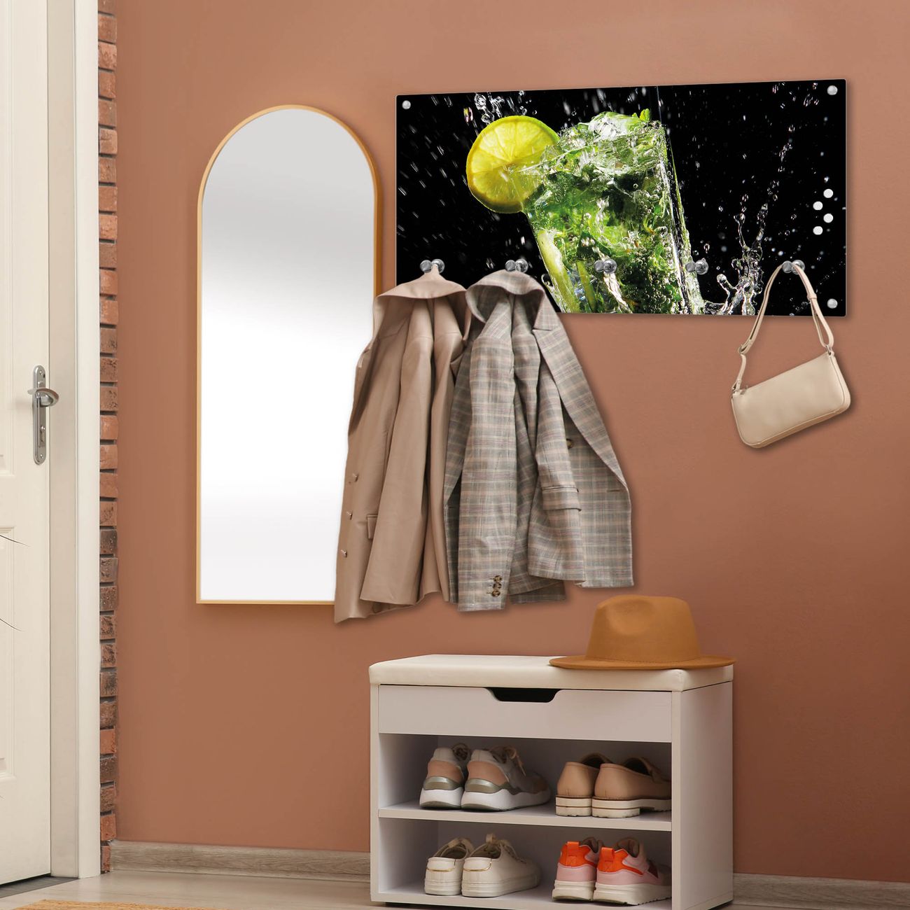 Wandgarderobe Glas 80x40cm Motiv Brasilianischer Cocktail