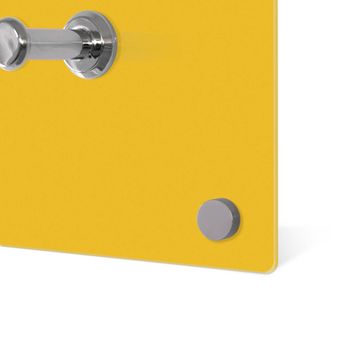Bitte beachten Sie, dass an dieser Garderobe nur starke Neodym-Magnete halten! FUNKTION: Die banjado Wandgarderobe mit Motiv Briefkasten Gelb ist Ihr täglicher Begleiter. Zuverlässig hängen hier Ihre Jacken und Mäntel griffbereit. Gleichzeitig ist die Design Garderobe magnetisch, Sie können Notizen anheften und durch das Echtglas ist Ihr Paneel auch beschreibbar und wieder abwischbar. DESIGN: Sie erhalten eine Garderobenleiste aus elegantem Echtglas mit dem Farbbrillanten Motiv Briefkasten Gelb hinterklebt. Das Design ist zeitlos klassisch, ohne dabei auf Funktionalität zu verzichten. Suchen Sie aus einer Vielzahl von Motiven das für Ihre Einrichtung Passende aus. DETAILS: Die Flurgarderobe besteht aus 4mm gehärtetem Sicherheitsglas. Sie ist 80cm breit, 40cm hoch und 6cm tief. Die Garderobenhaken zur Selbstmontage präsentieren sich in Edelstahl-Optik, ebenso die Abstandshalter für die Wandmontage. Ihre neue Garderobe ist sofort einsatzbereit. NUTZEN: Ihre neue Garderobe hält nicht nur zuverlässig Ihre Kleidung, sie ist auch optisch ein Blickfang. Durch die magnetische Wirkung können Sie mit 4 beigefügten extrastarken Neodym-Magneten Notizen anheften und mit wasserlöslichen Kreidestiften oder Whiteboard-Markern auch Nachrichten hinterlassen. BANJADO: Wir sind ein kleines kreatives Team aus Sachsen und entwickeln Produkte die Design und Funktionalität verbinden sollen. Viel Freude mit Ihrer neuen Garderobe wünscht das banjado-Team!