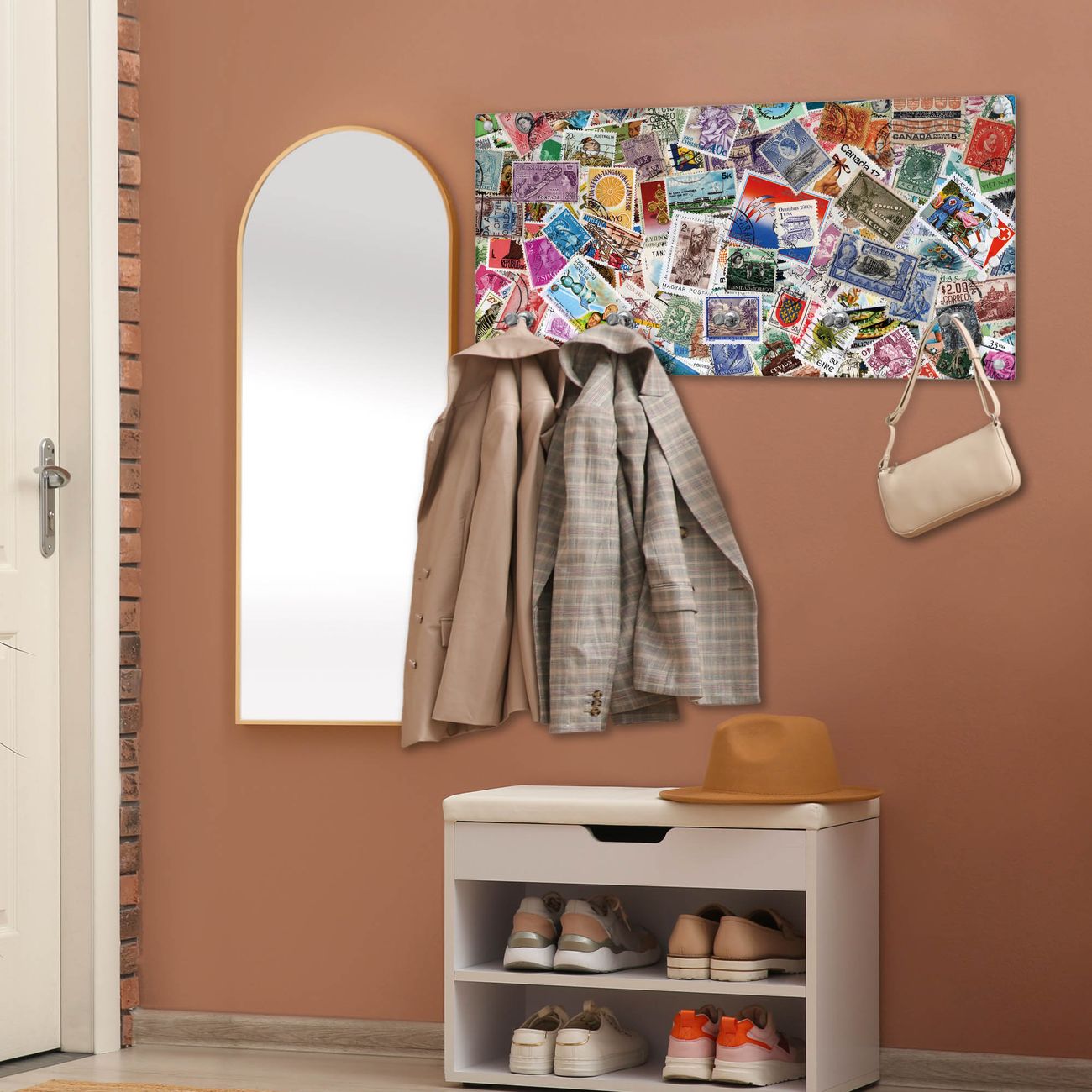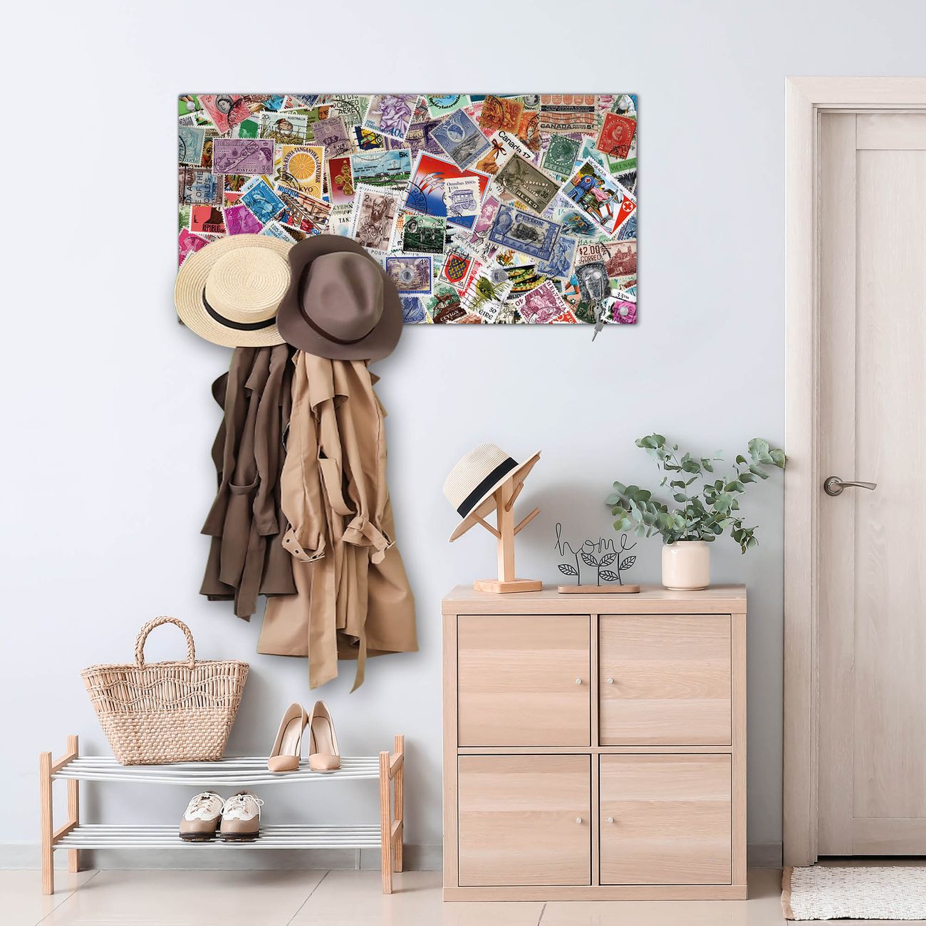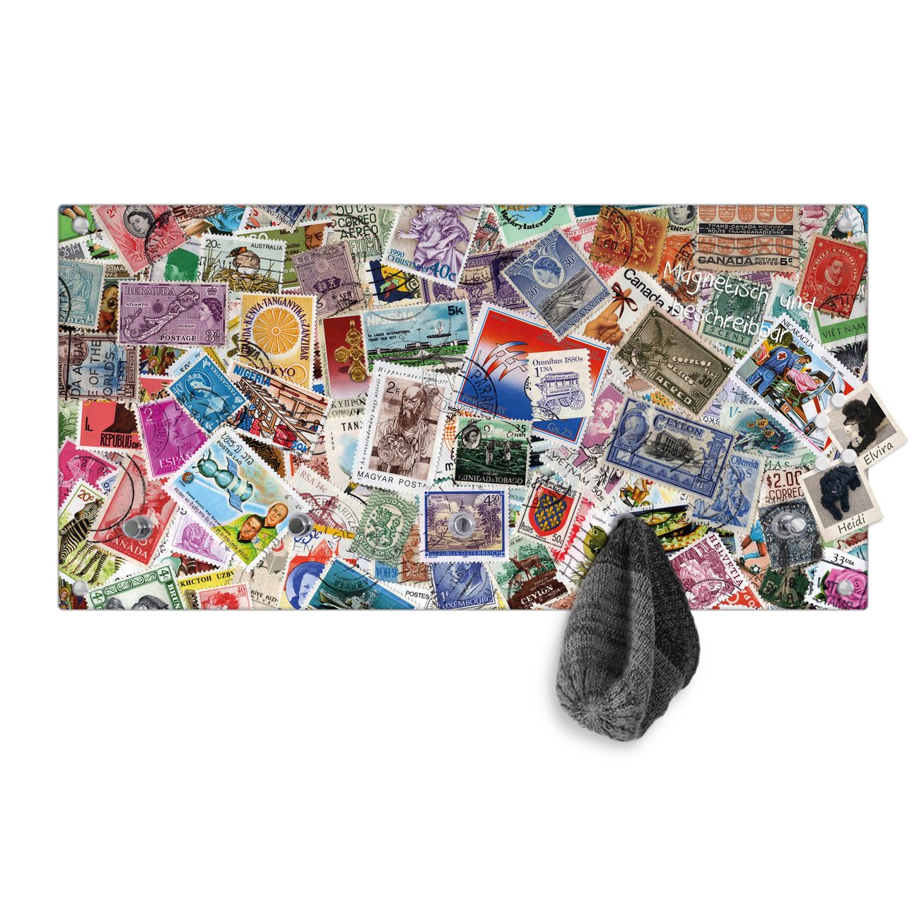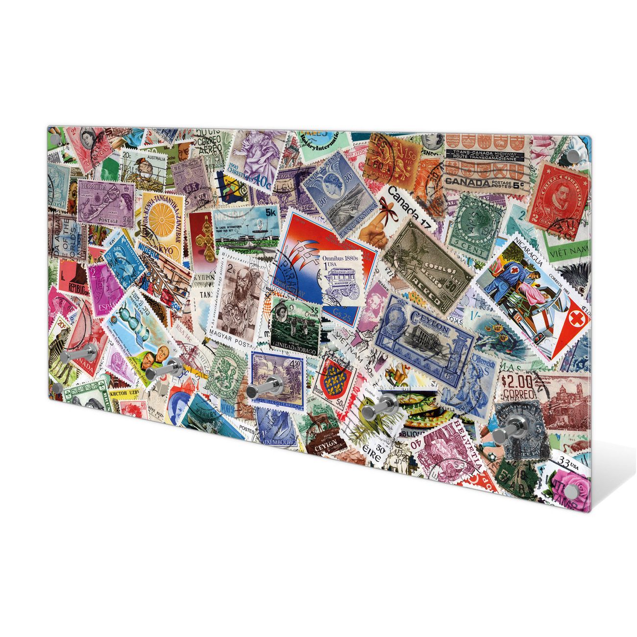 Wandgarderobe Glas 80x40cm Motiv Briefmarken