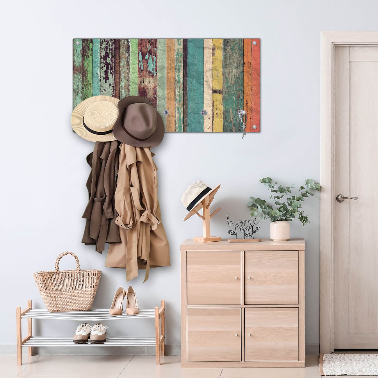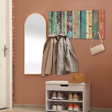 Wandgarderobe Glas 80x40cm Motiv Bunte Bretterwand