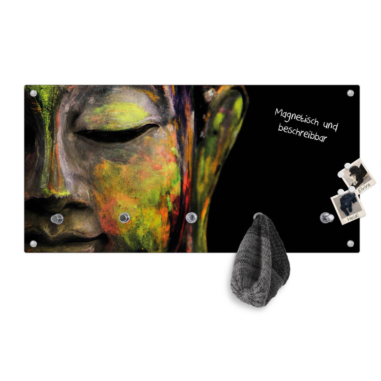 Wandgarderobe Glas 80x40cm Motiv Bunter Buddha