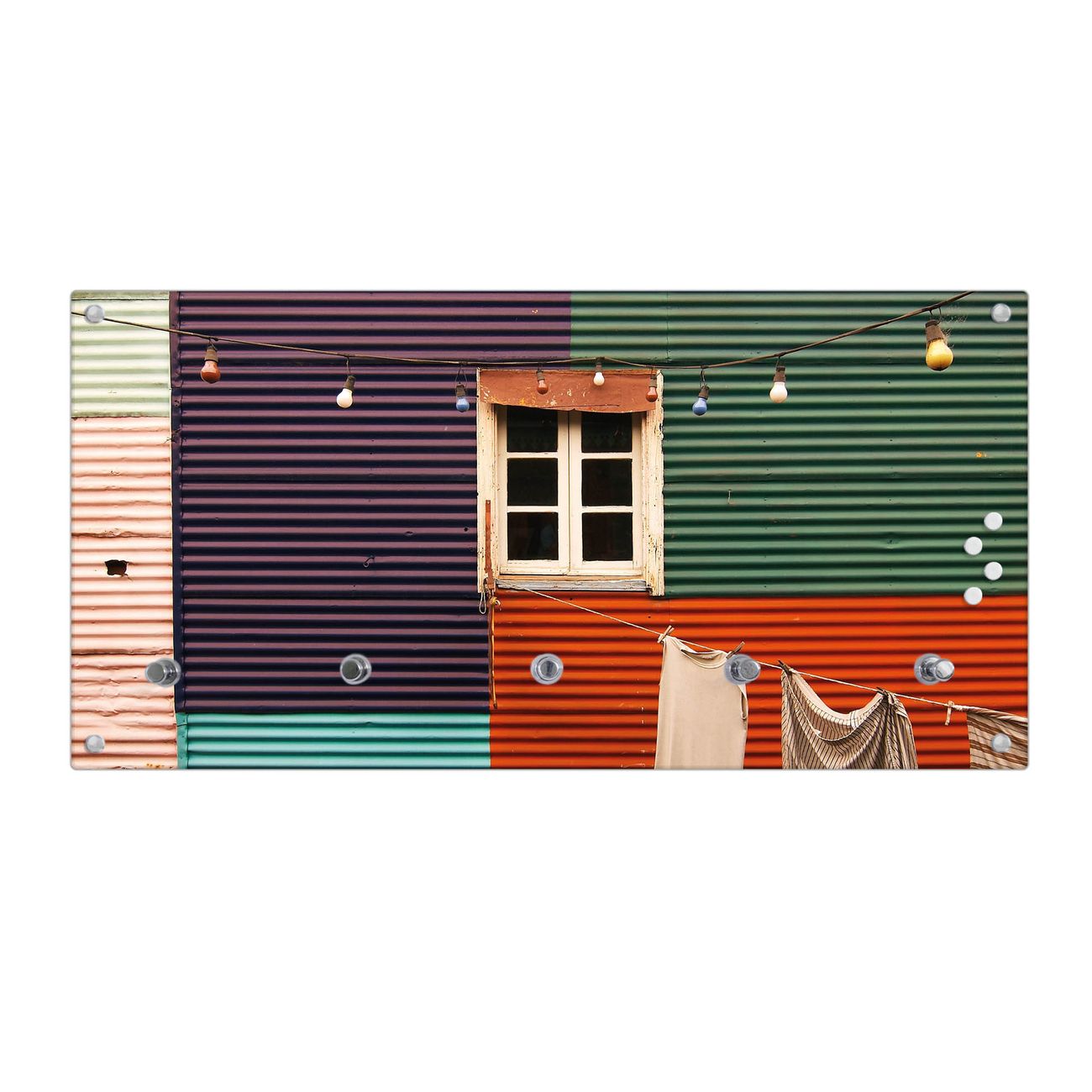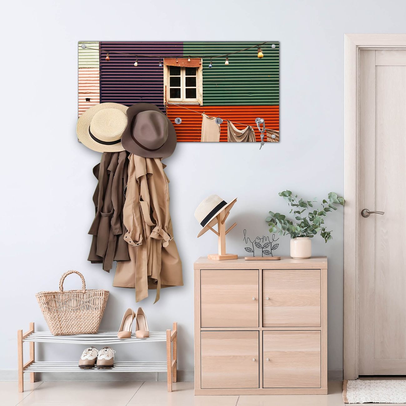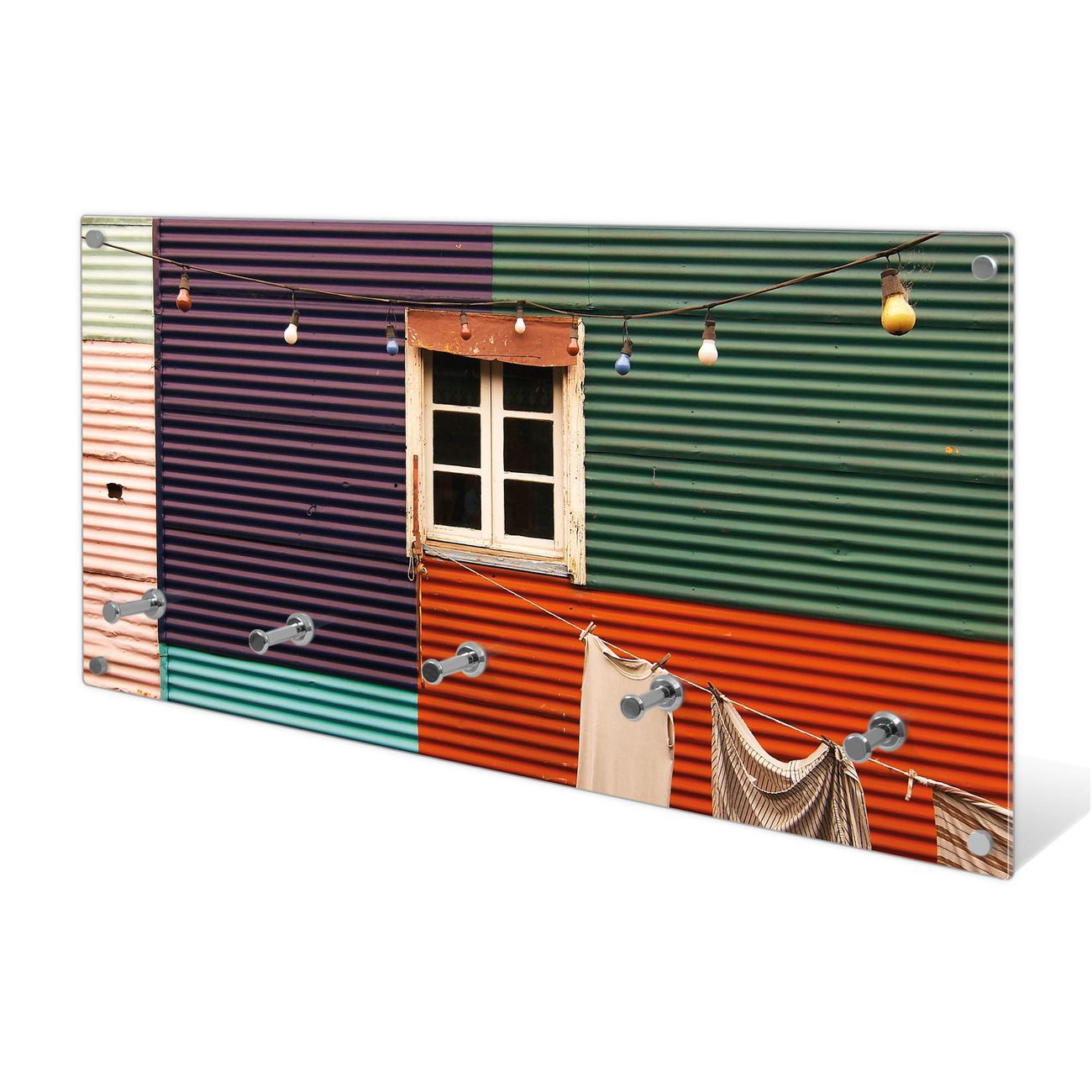 Wandgarderobe Glas 80x40cm Motiv Buntes Haus