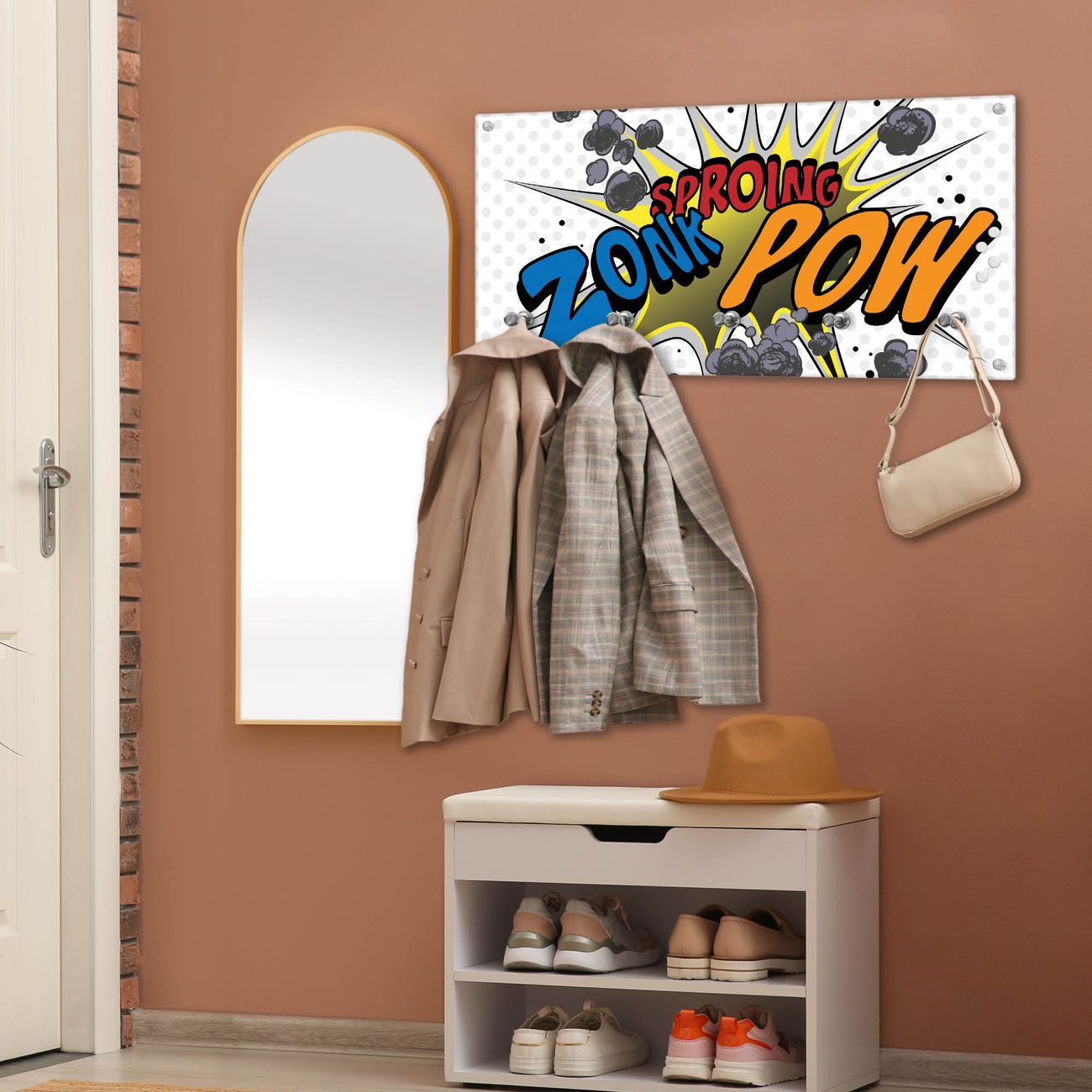 Wandgarderobe Glas 80x40cm Motiv Comic