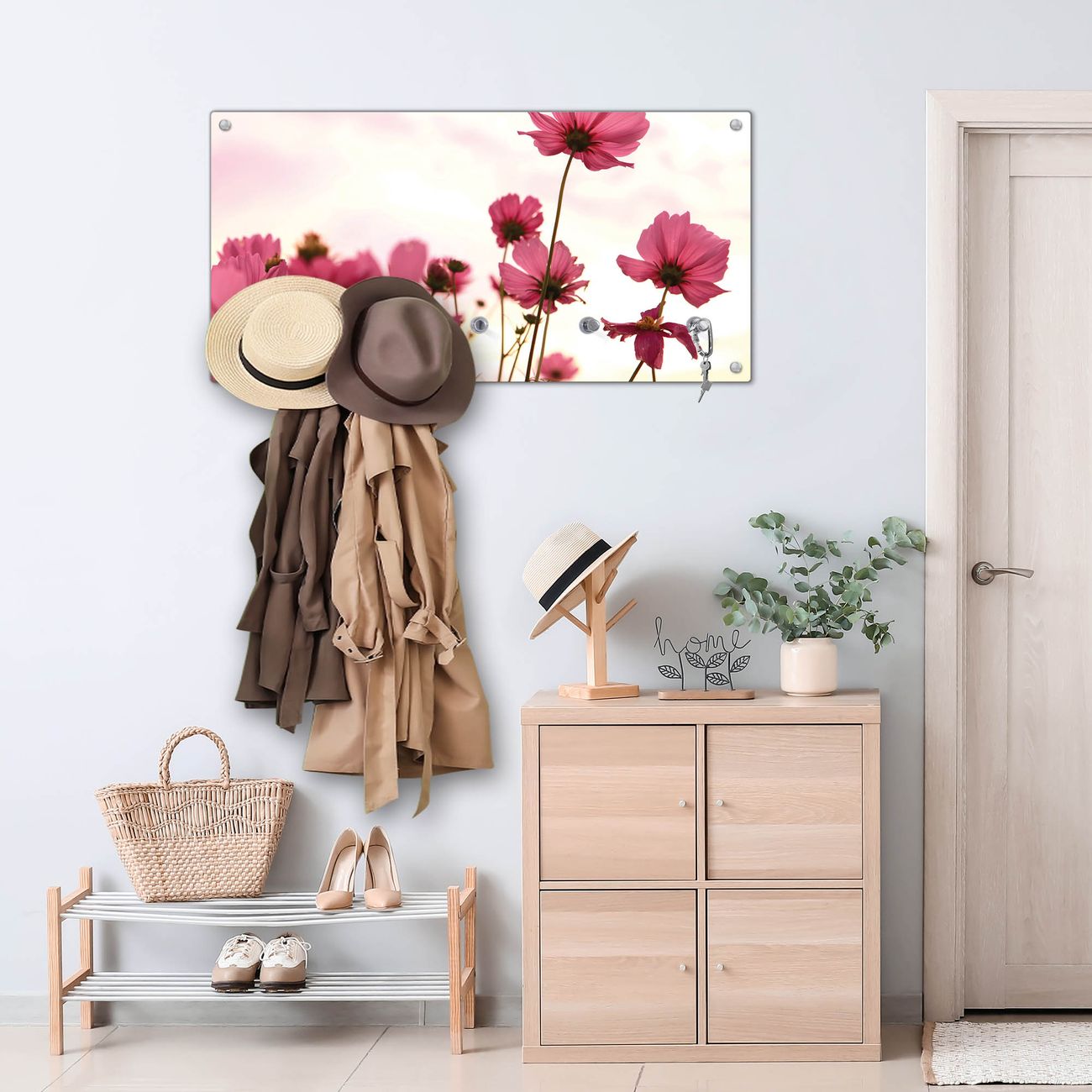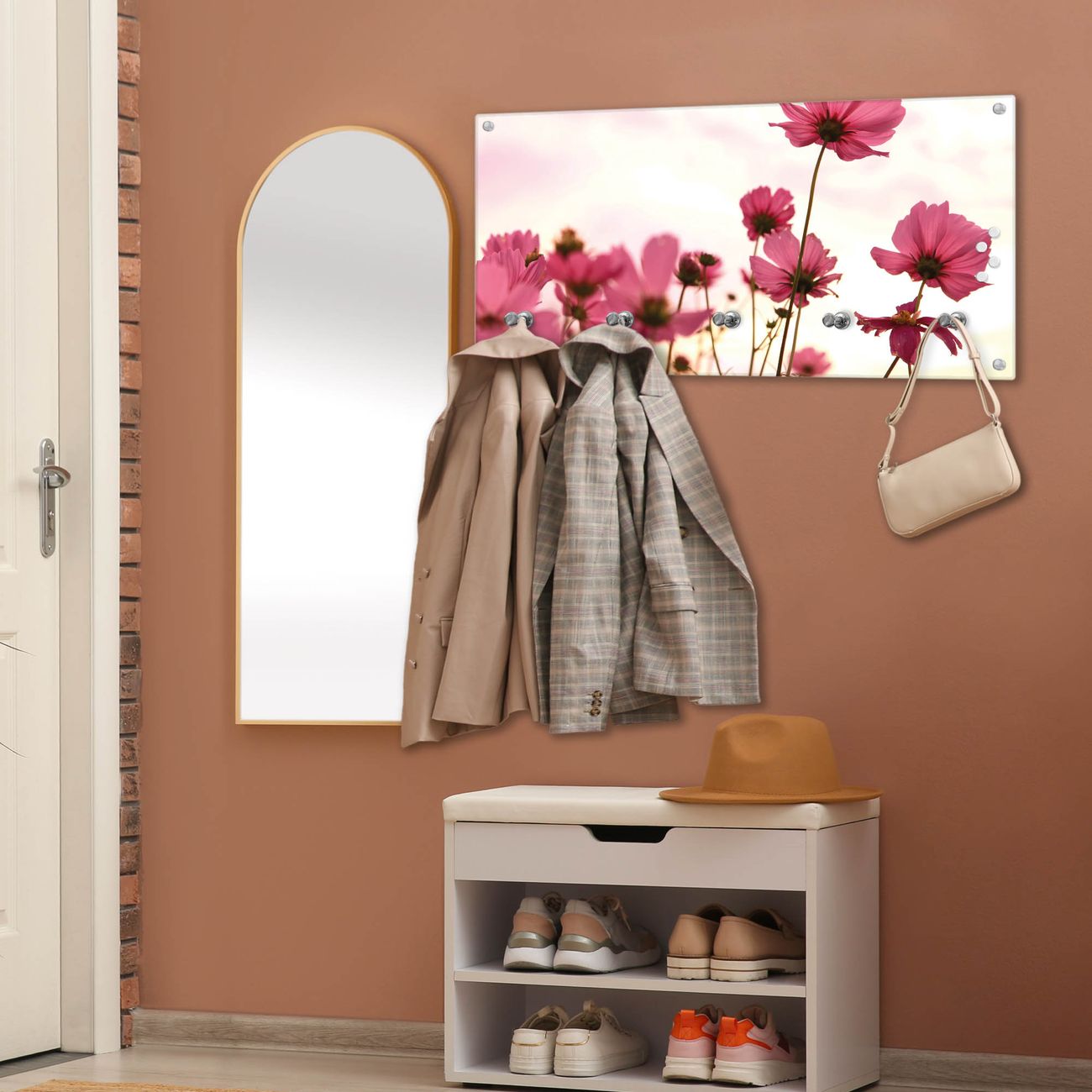 Wandgarderobe Glas 80x40cm Motiv Cosmea