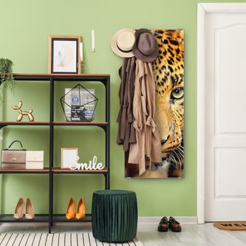 FUNKTION: Die banjado Wandgarderobe mit Motiv Daphne ist Ihr täglicher Begleiter. Zuverlässig hängen hier Ihre Jacken und Mäntel griffbereit. Das Echtglas ist Ihr Paneel auch beschreibbar und wieder abwischbar. DESIGN: Sie erhalten eine Garderobenleiste aus elegantem Echtglas mit dem Farbbrillanten Motiv Daphne hinterklebt. Das Design ist zeitlos klassisch, ohne dabei auf Funktionalität zu verzichten. Suchen Sie aus einer Vielzahl von Motiven das für Ihre Einrichtung Passende aus. DETAILS: Die Flurgarderobe besteht aus 4mm gehärtetem Sicherheitsglas. Sie ist 50cm breit, 125cm hoch und 6cm tief. Die Garderobenhaken zur Selbstmontage präsentieren sich in Edelstahl-Optik, ebenso die Abstandshalter für die Wandmontage. Ihre neue Garderobe ist sofort einsatzbereit. NUTZEN: Ihre neue Garderobe hält nicht nur zuverlässig Ihre Kleidung, sie ist auch optisch ein Blickfang. Durch das Glas können Sie an der Garderobe mit wasserlöslichen Kreidestiften oder Whiteboard-Markern auch Nachrichten hinterlassen. BANJADO: Wir sind ein kleines kreatives Team aus Sachsen und entwickeln Produkte die Design und Funktionalität verbinden sollen. Viel Freude mit Ihrer neuen Garderobe wünscht das banjado-Team!