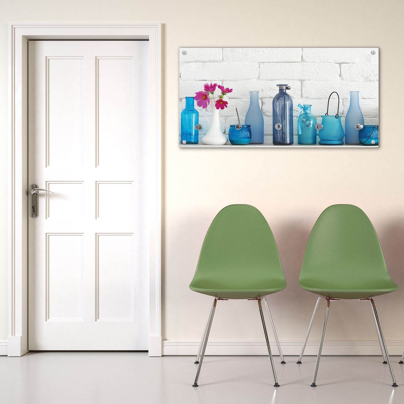 Wandgarderobe Glas 80x40cm Motiv Dekoartikel Blau