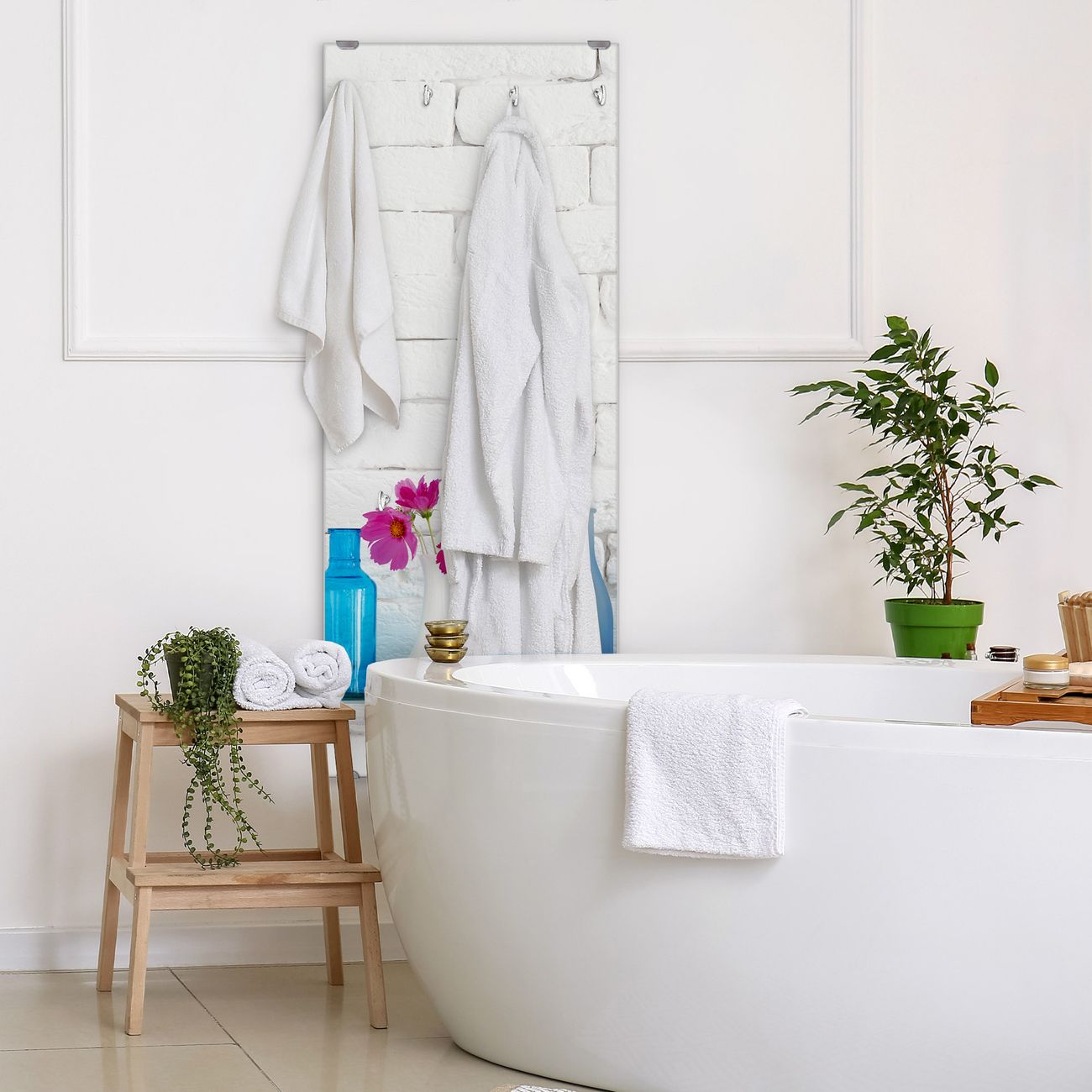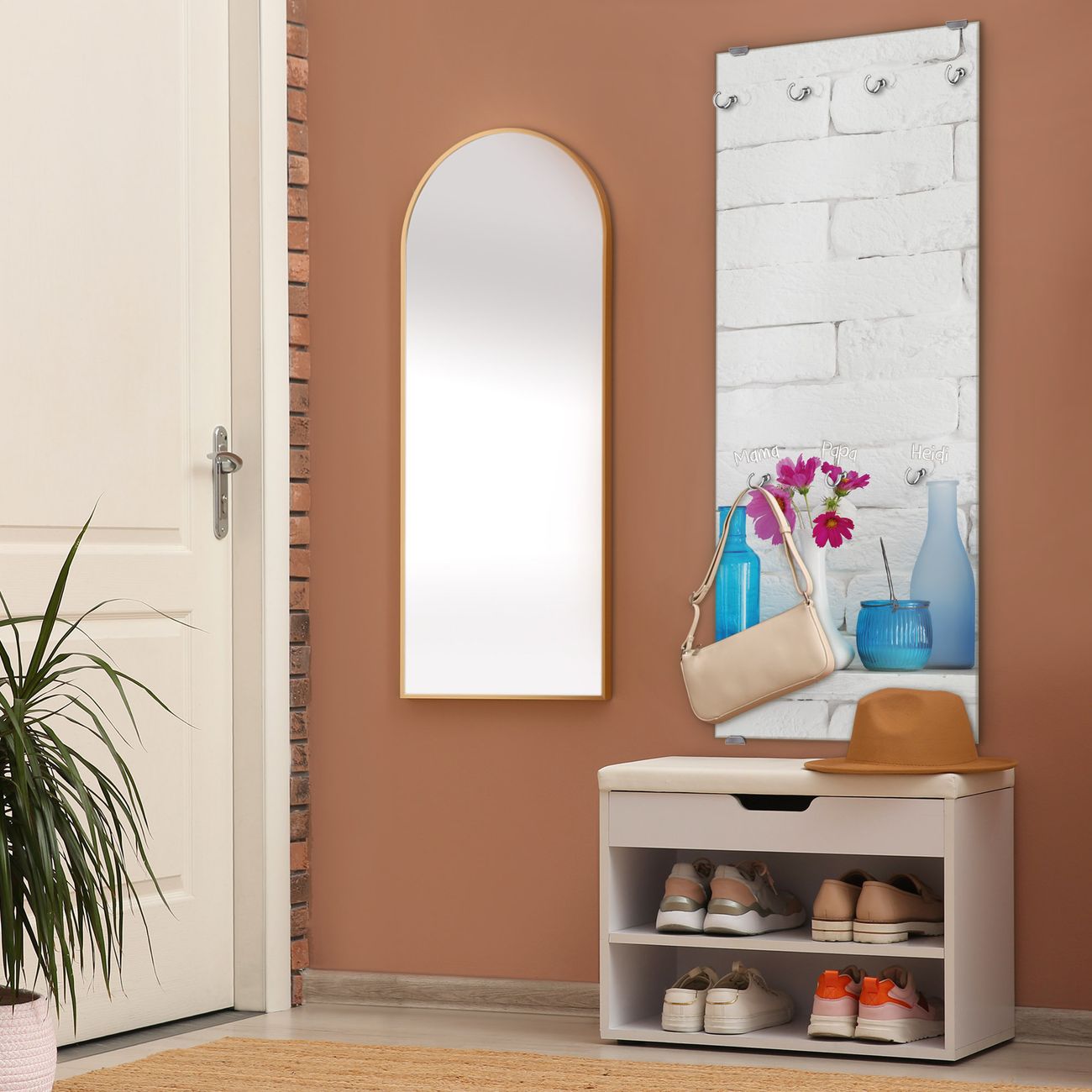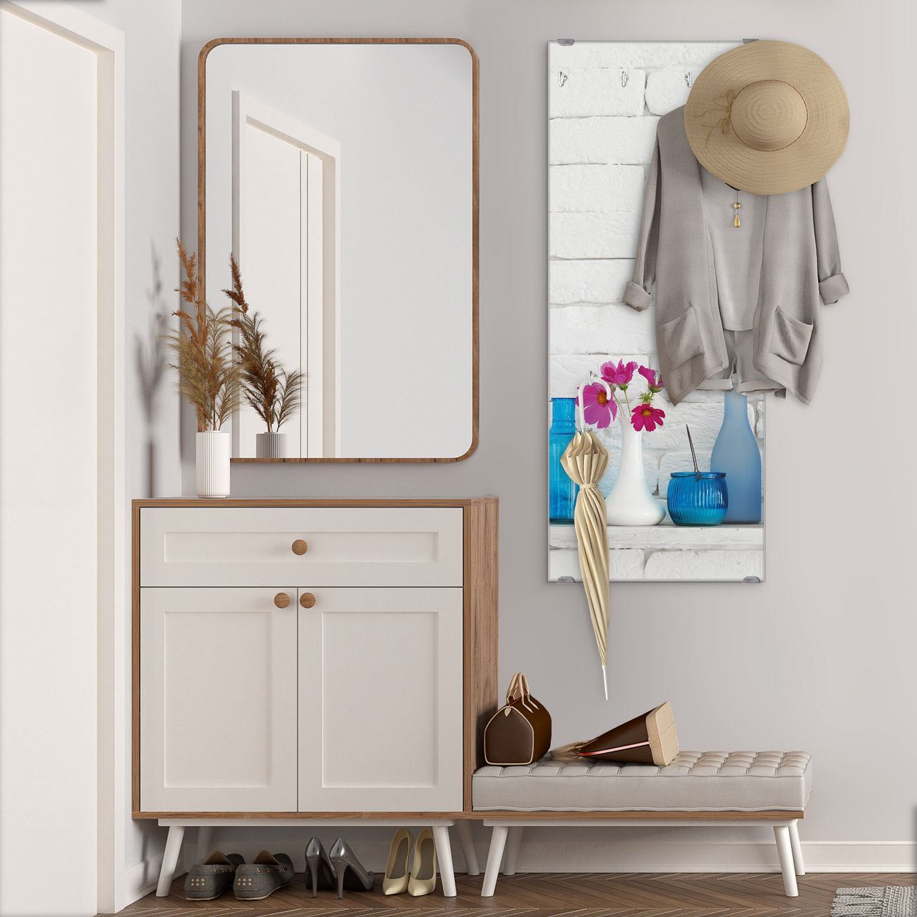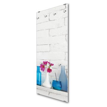 FUNKTION: Die banjado Wandgarderobe mit Motiv Dekoartikel Blau ist Ihr täglicher Begleiter. Zuverlässig hängen hier Ihre Jacken und Mäntel griffbereit. Das Echtglas ist Ihr Paneel auch beschreibbar und wieder abwischbar. DESIGN: Sie erhalten eine Garderobenleiste aus elegantem Echtglas mit dem Farbbrillanten Motiv Dekoartikel Blau hinterklebt. Das Design ist zeitlos klassisch, ohne dabei auf Funktionalität zu verzichten. Suchen Sie aus einer Vielzahl von Motiven das für Ihre Einrichtung Passende aus. DETAILS: Die Flurgarderobe besteht aus 4mm gehärtetem Sicherheitsglas. Sie ist 50cm breit, 125cm hoch und 6cm tief. Die Garderobenhaken zur Selbstmontage präsentieren sich in Edelstahl-Optik, ebenso die Abstandshalter für die Wandmontage. Ihre neue Garderobe ist sofort einsatzbereit. NUTZEN: Ihre neue Garderobe hält nicht nur zuverlässig Ihre Kleidung, sie ist auch optisch ein Blickfang. Durch das Glas können Sie an der Garderobe mit wasserlöslichen Kreidestiften oder Whiteboard-Markern auch Nachrichten hinterlassen. BANJADO: Wir sind ein kleines kreatives Team aus Sachsen und entwickeln Produkte die Design und Funktionalität verbinden sollen. Viel Freude mit Ihrer neuen Garderobe wünscht das banjado-Team!