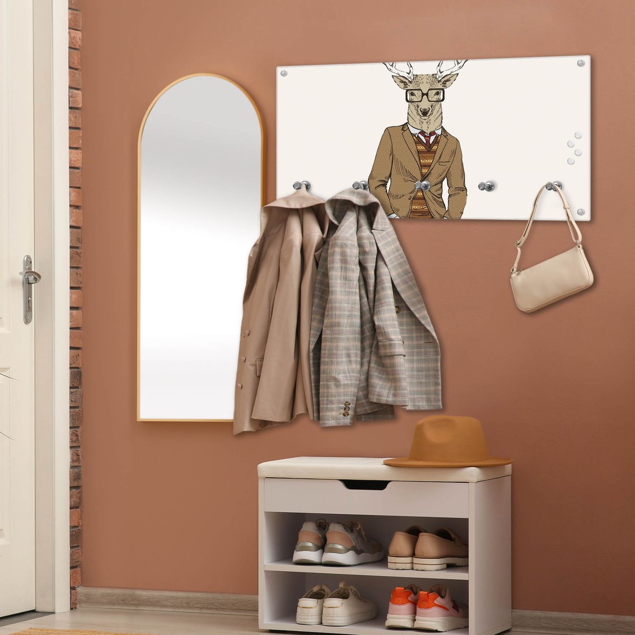 Wandgarderobe Glas 80x40cm Motiv Doktor Hirsch