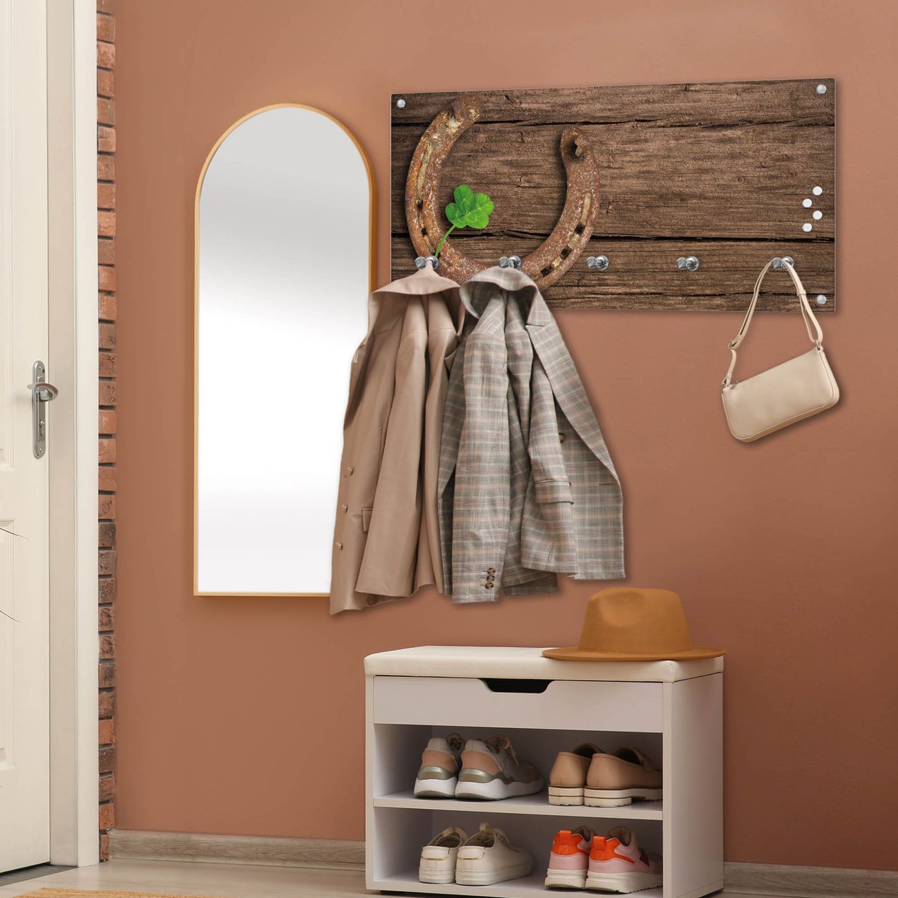 Wandgarderobe Glas 80x40cm Motiv Doppeltes Glück