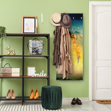 FUNKTION: Die banjado Wandgarderobe mit Motiv Drachen ist Ihr täglicher Begleiter. Zuverlässig hängen hier Ihre Jacken und Mäntel griffbereit. Das Echtglas ist Ihr Paneel auch beschreibbar und wieder abwischbar. DESIGN: Sie erhalten eine Garderobenleiste aus elegantem Echtglas mit dem Farbbrillanten Motiv Drachen hinterklebt. Das Design ist zeitlos klassisch, ohne dabei auf Funktionalität zu verzichten. Suchen Sie aus einer Vielzahl von Motiven das für Ihre Einrichtung Passende aus. DETAILS: Die Flurgarderobe besteht aus 4mm gehärtetem Sicherheitsglas. Sie ist 50cm breit, 125cm hoch und 6cm tief. Die Garderobenhaken zur Selbstmontage präsentieren sich in Edelstahl-Optik, ebenso die Abstandshalter für die Wandmontage. Ihre neue Garderobe ist sofort einsatzbereit. NUTZEN: Ihre neue Garderobe hält nicht nur zuverlässig Ihre Kleidung, sie ist auch optisch ein Blickfang. Durch das Glas können Sie an der Garderobe mit wasserlöslichen Kreidestiften oder Whiteboard-Markern auch Nachrichten hinterlassen. BANJADO: Wir sind ein kleines kreatives Team aus Sachsen und entwickeln Produkte die Design und Funktionalität verbinden sollen. Viel Freude mit Ihrer neuen Garderobe wünscht das banjado-Team!