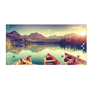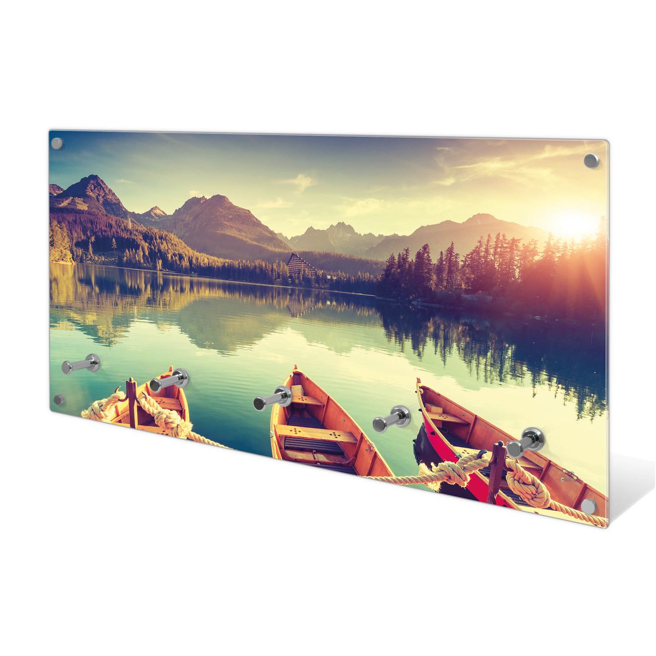 Wandgarderobe Glas 80x40cm Motiv Drei Boote Am Steg