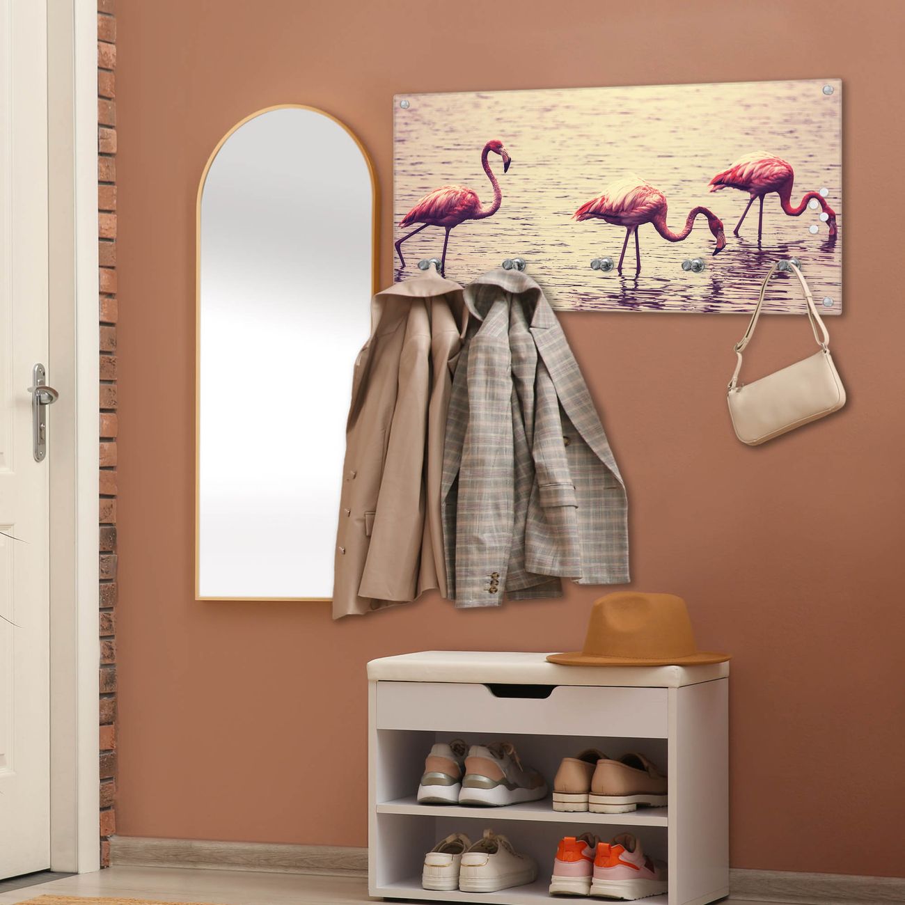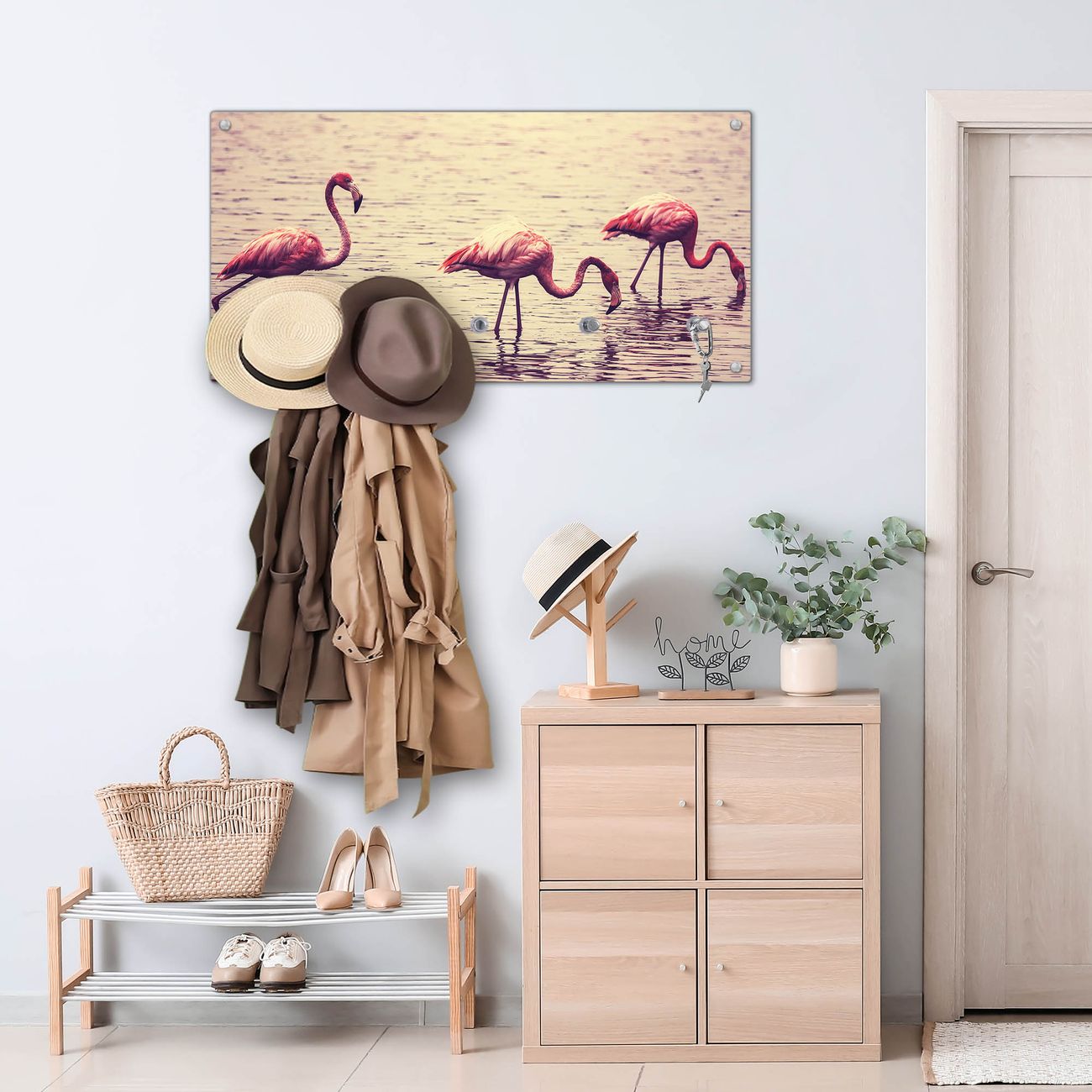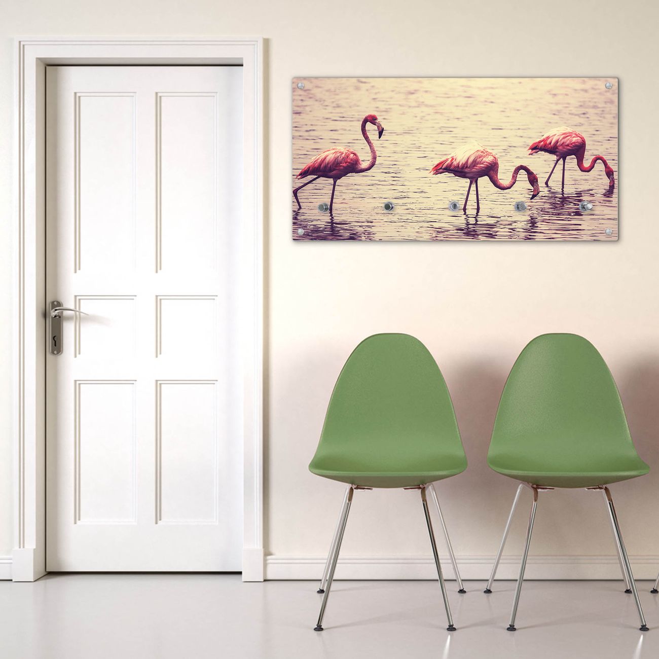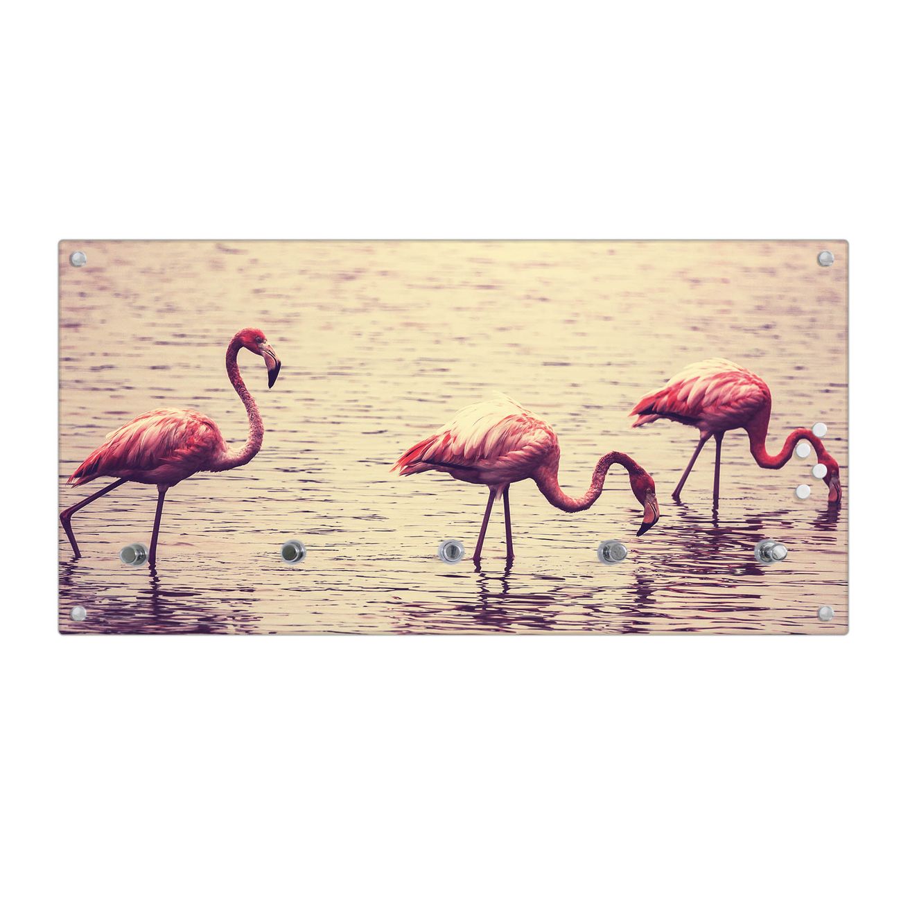 Wandgarderobe Glas 80x40cm Motiv Drei Flamnigos