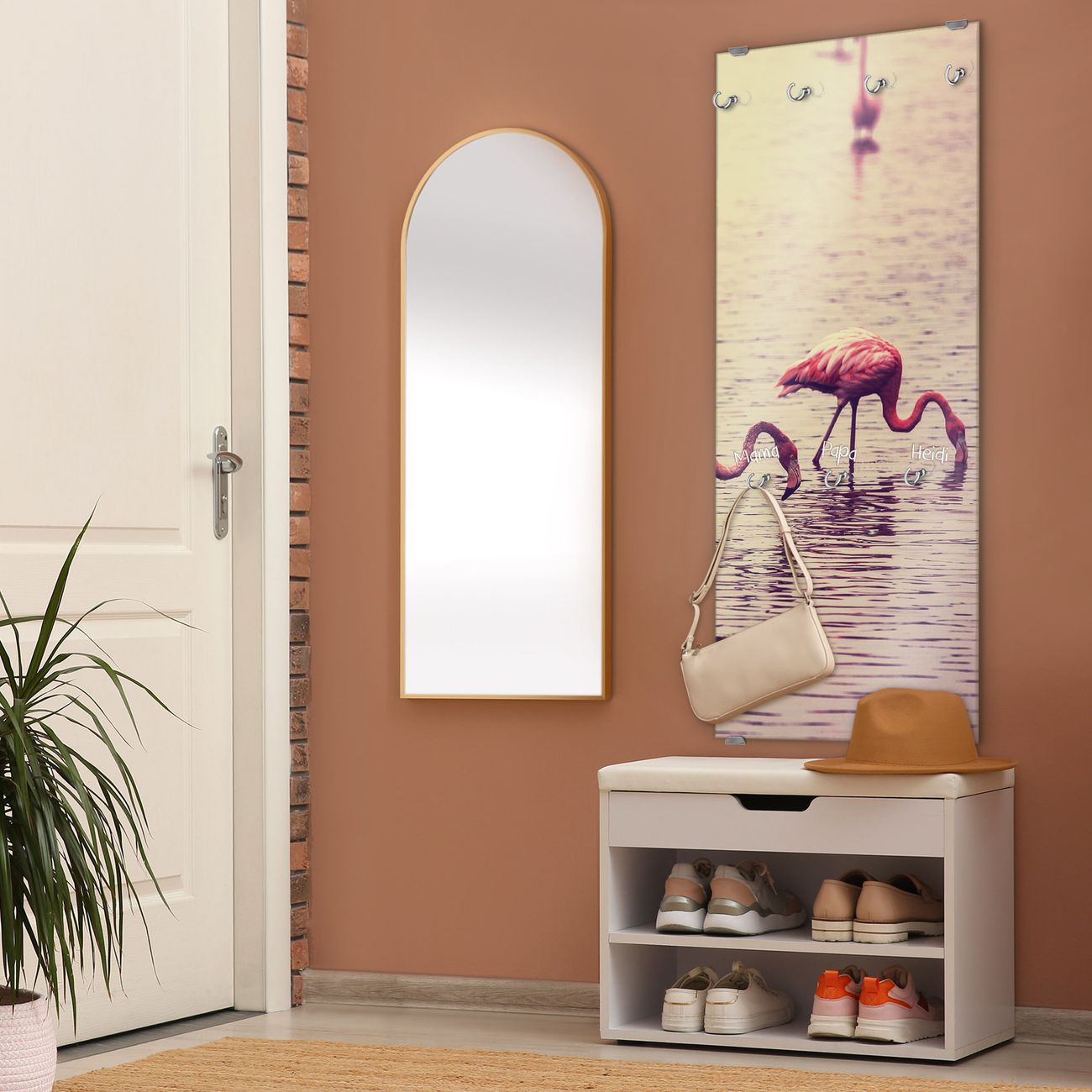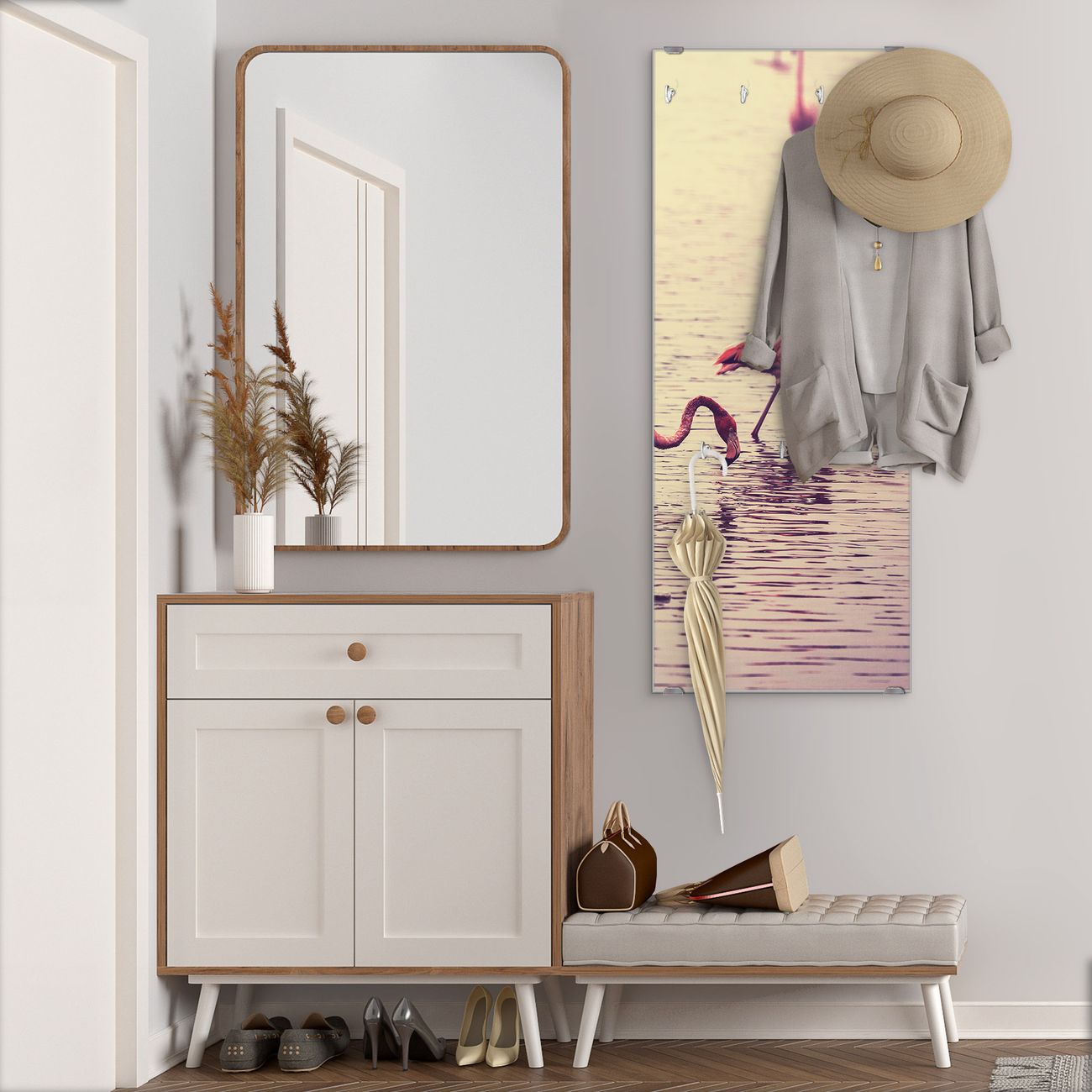 Flurgarderobe Glas 50x125cm Motiv Drei Flamnigos