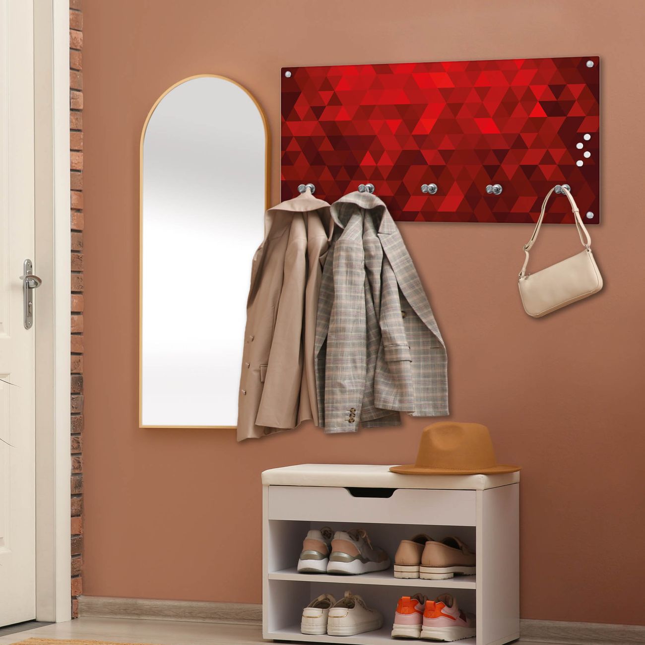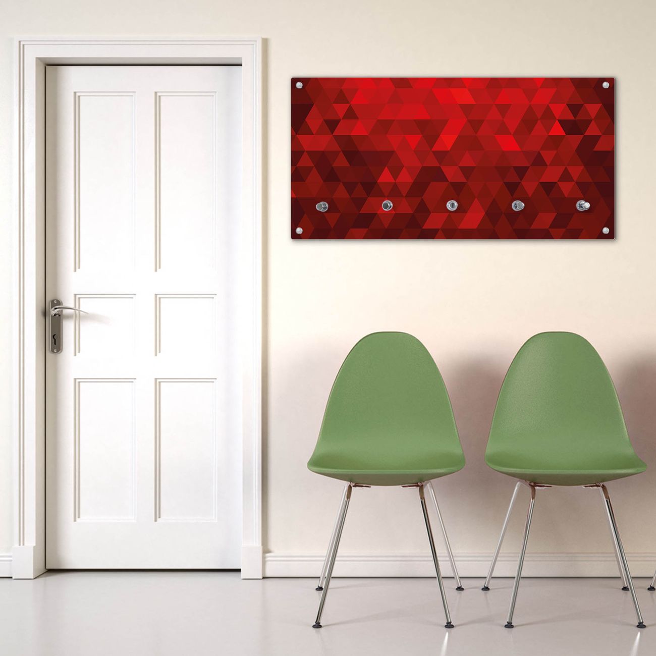 Wandgarderobe Glas 80x40cm Motiv Dreiecke Rot