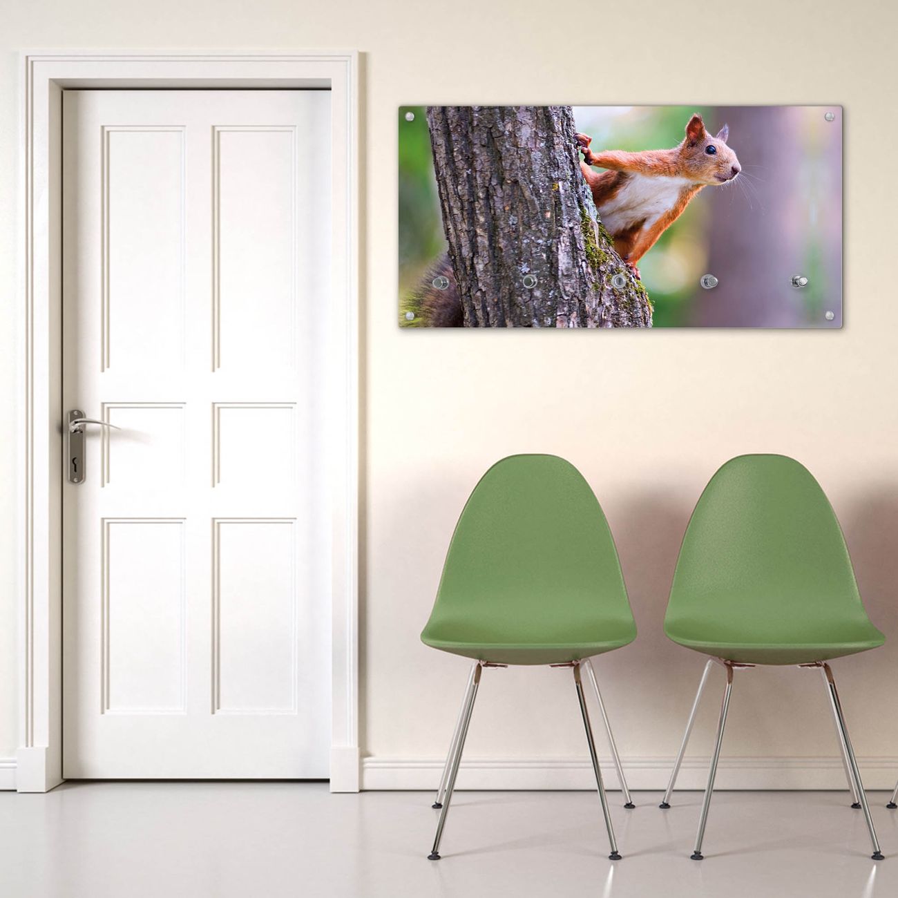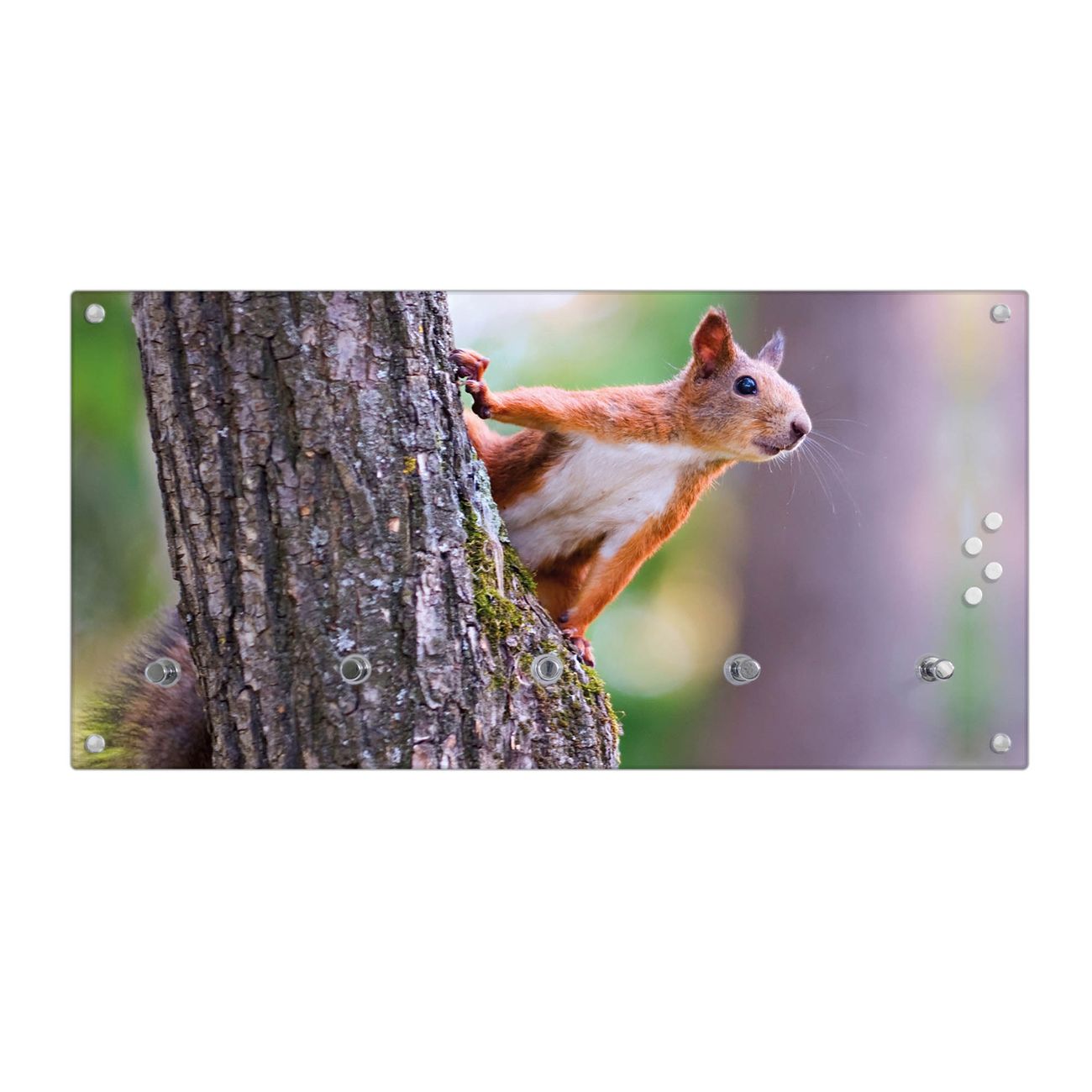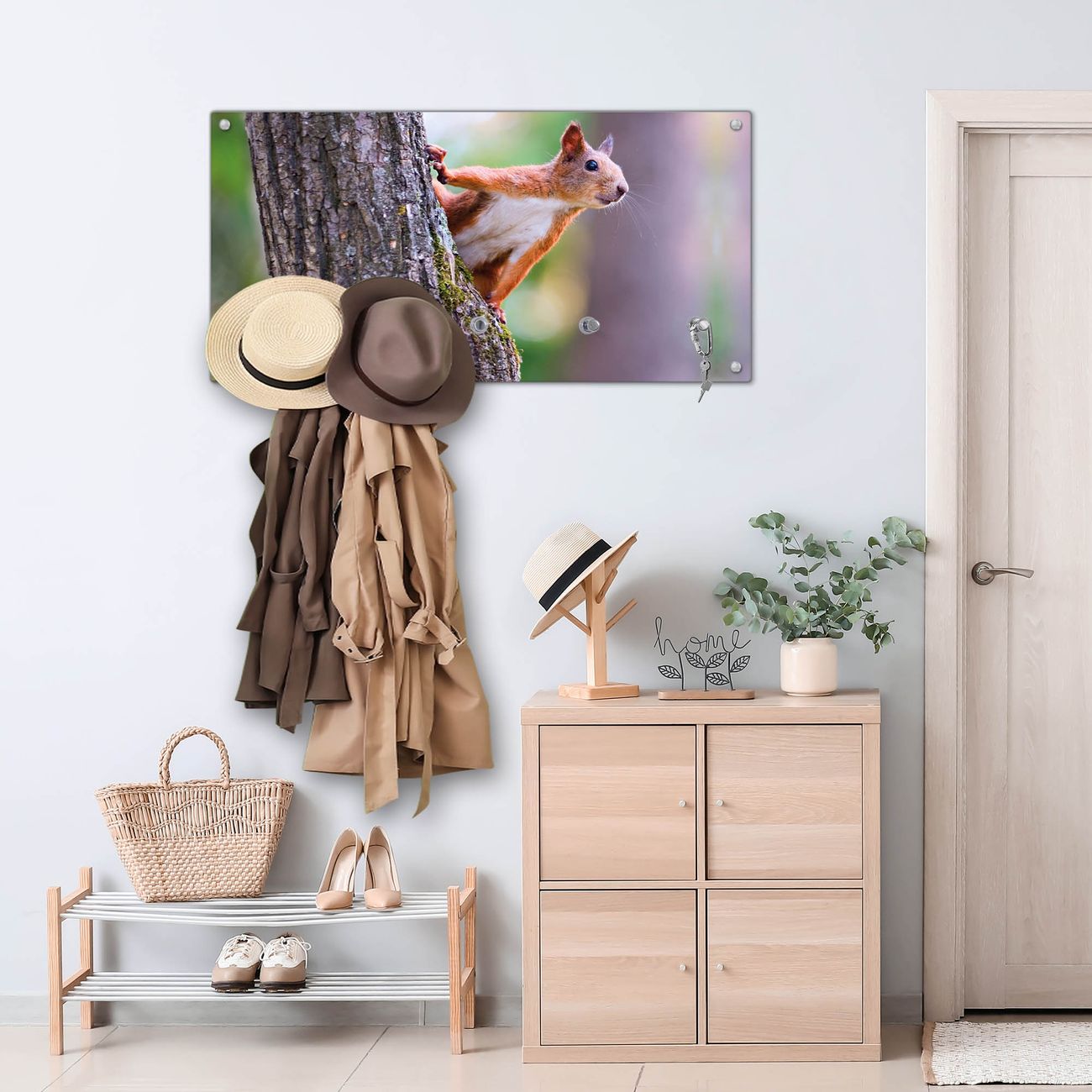 Wandgarderobe Glas 80x40cm Motiv Eichhörnchen