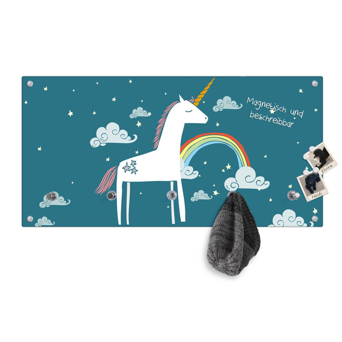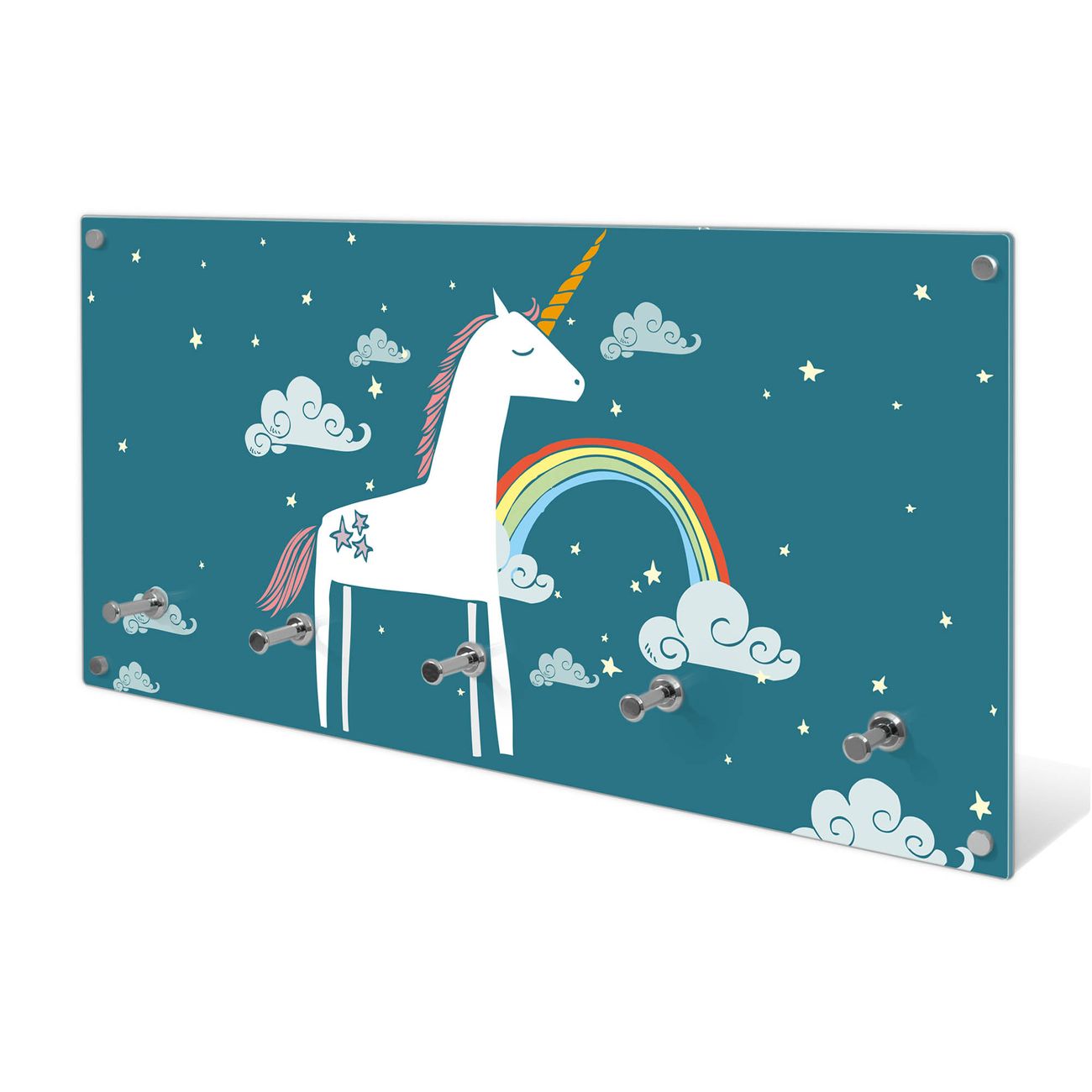 Wandgarderobe Glas 80x40cm Motiv Einhorn