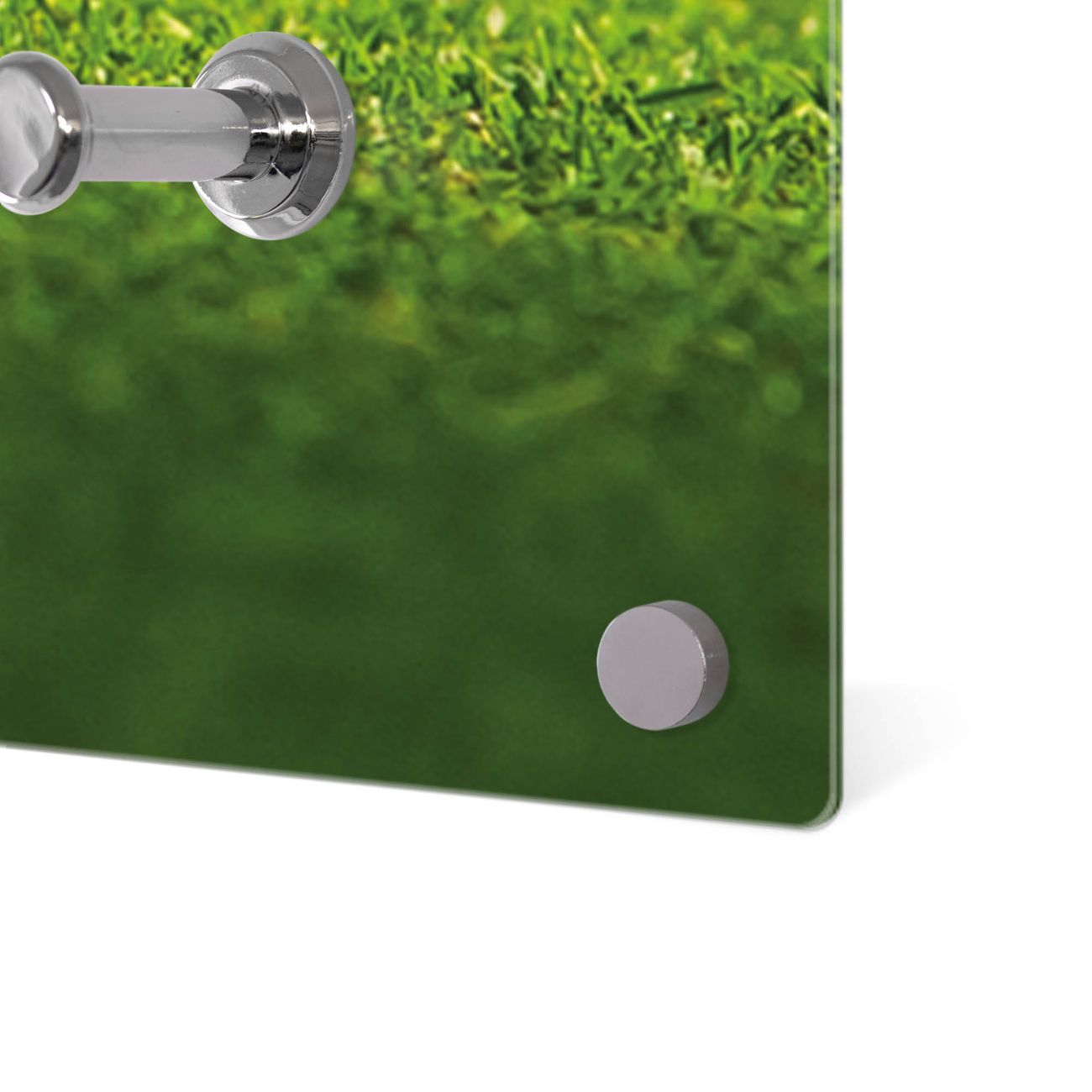 Bitte beachten Sie, dass an dieser Garderobe nur starke Neodym-Magnete halten! FUNKTION: Die banjado Wandgarderobe mit Motiv Einsamer Golfball ist Ihr täglicher Begleiter. Zuverlässig hängen hier Ihre Jacken und Mäntel griffbereit. Gleichzeitig ist die Design Garderobe magnetisch, Sie können Notizen anheften und durch das Echtglas ist Ihr Paneel auch beschreibbar und wieder abwischbar. DESIGN: Sie erhalten eine Garderobenleiste aus elegantem Echtglas mit dem Farbbrillanten Motiv Einsamer Golfball hinterklebt. Das Design ist zeitlos klassisch, ohne dabei auf Funktionalität zu verzichten. Suchen Sie aus einer Vielzahl von Motiven das für Ihre Einrichtung Passende aus. DETAILS: Die Flurgarderobe besteht aus 4mm gehärtetem Sicherheitsglas. Sie ist 80cm breit, 40cm hoch und 6cm tief. Die Garderobenhaken zur Selbstmontage präsentieren sich in Edelstahl-Optik, ebenso die Abstandshalter für die Wandmontage. Ihre neue Garderobe ist sofort einsatzbereit. NUTZEN: Ihre neue Garderobe hält nicht nur zuverlässig Ihre Kleidung, sie ist auch optisch ein Blickfang. Durch die magnetische Wirkung können Sie mit 4 beigefügten extrastarken Neodym-Magneten Notizen anheften und mit wasserlöslichen Kreidestiften oder Whiteboard-Markern auch Nachrichten hinterlassen. BANJADO: Wir sind ein kleines kreatives Team aus Sachsen und entwickeln Produkte die Design und Funktionalität verbinden sollen. Viel Freude mit Ihrer neuen Garderobe wünscht das banjado-Team!