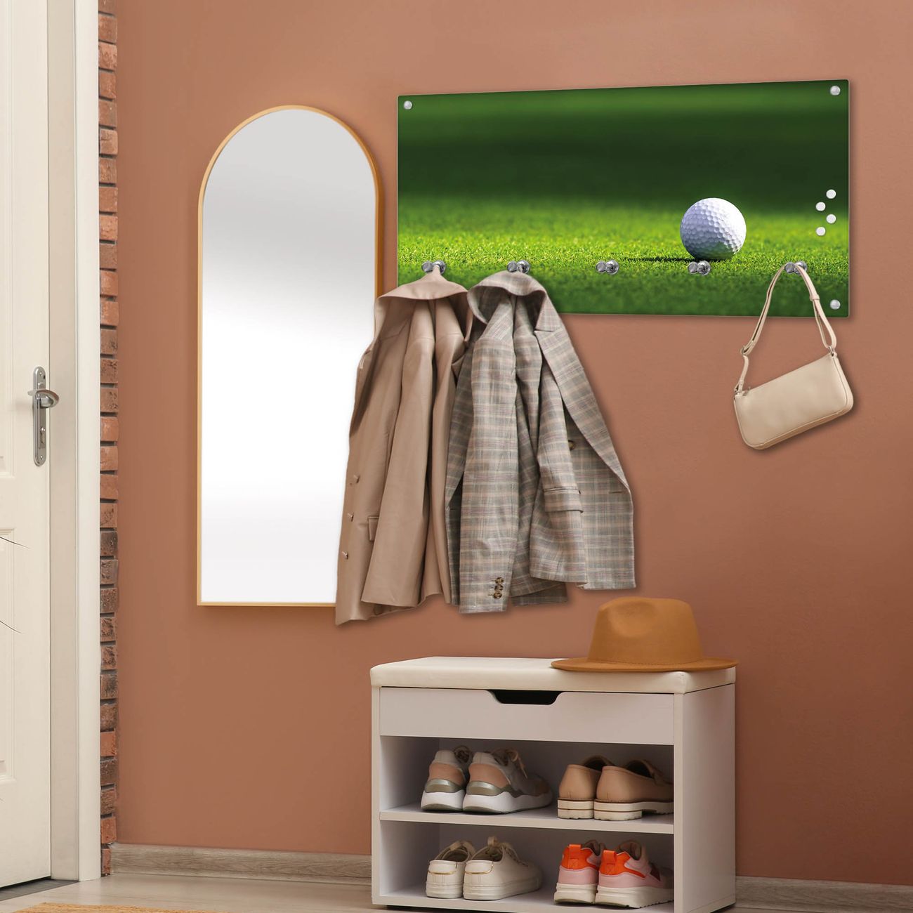 Wandgarderobe Glas 80x40cm Motiv Einsamer Golfball