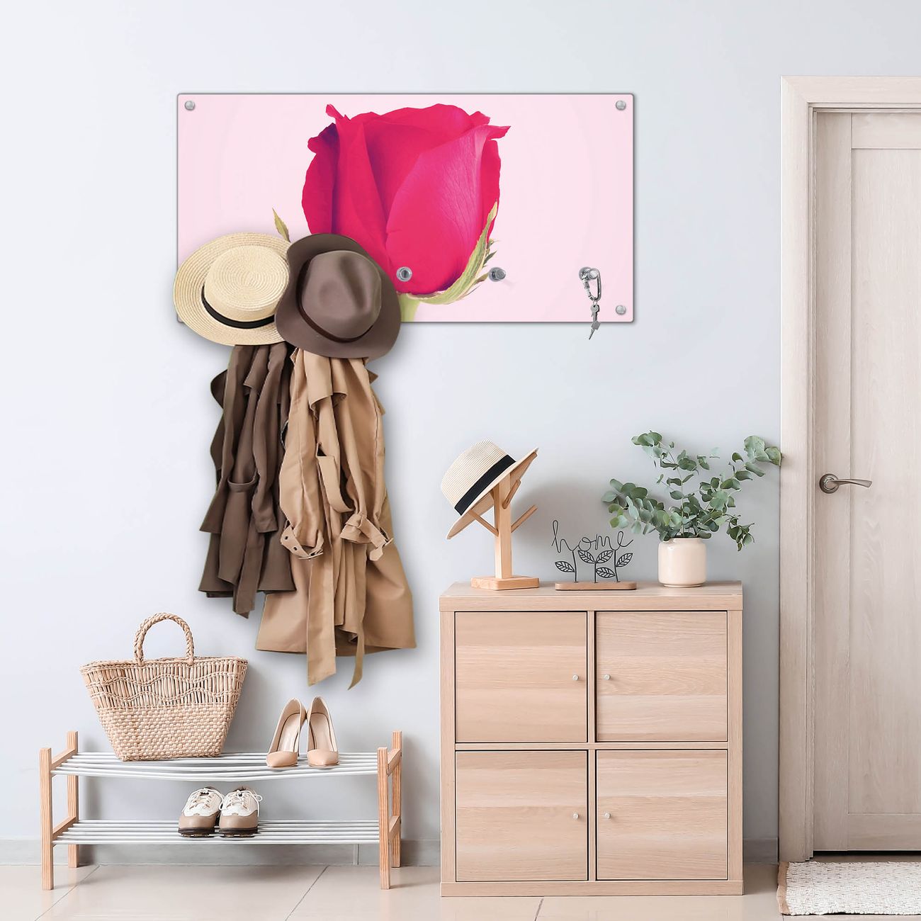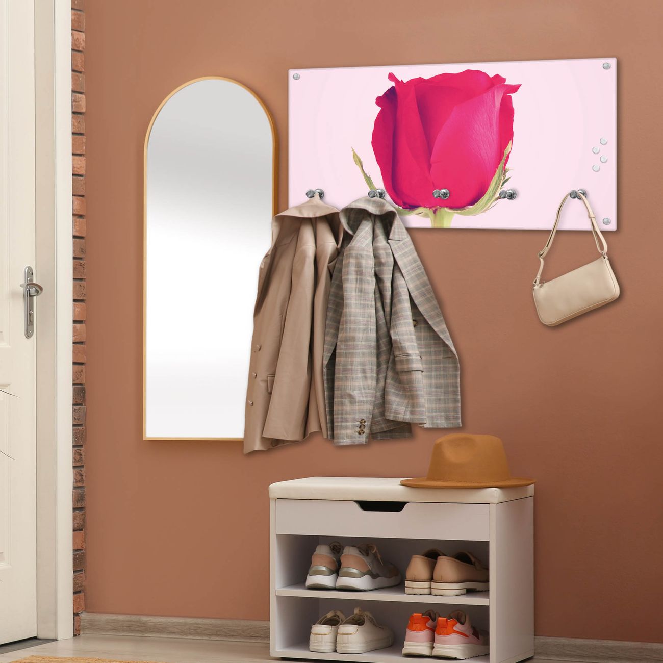Wandgarderobe Glas 80x40cm Motiv Einzelne Rose
