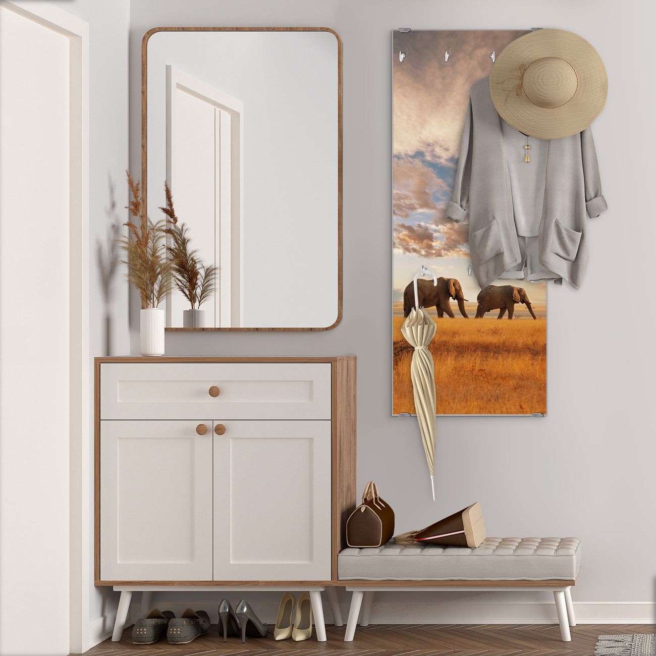 Flurgarderobe Glas 50x125cm Motiv Elefanten