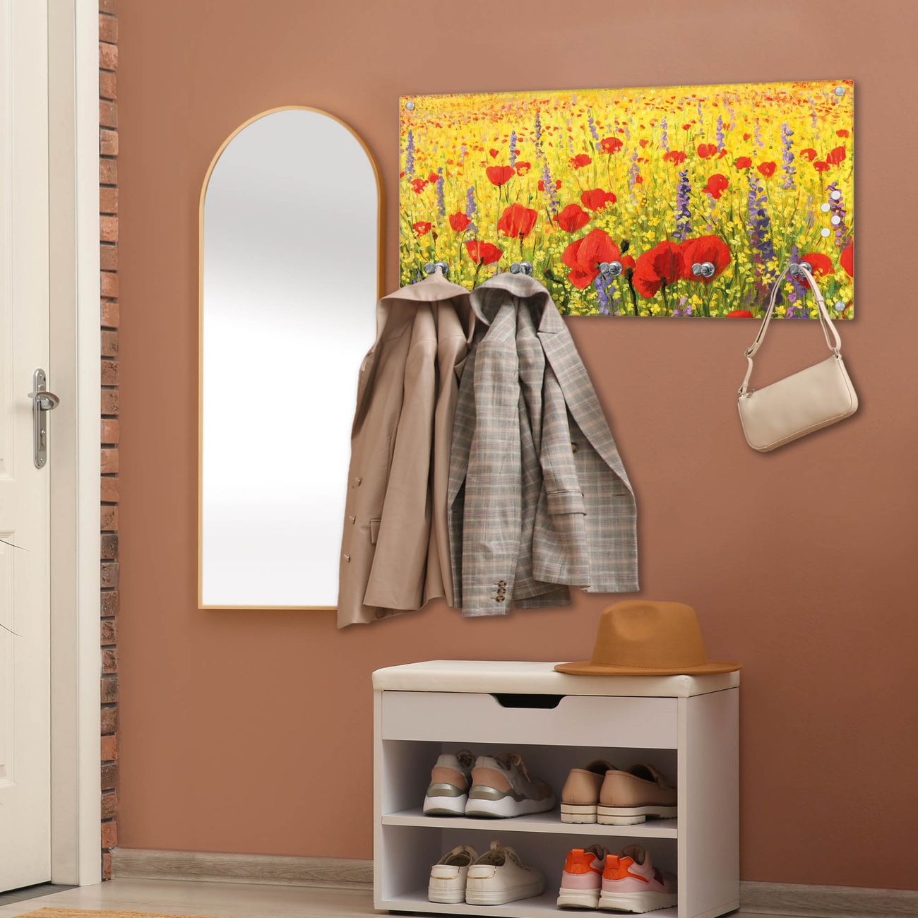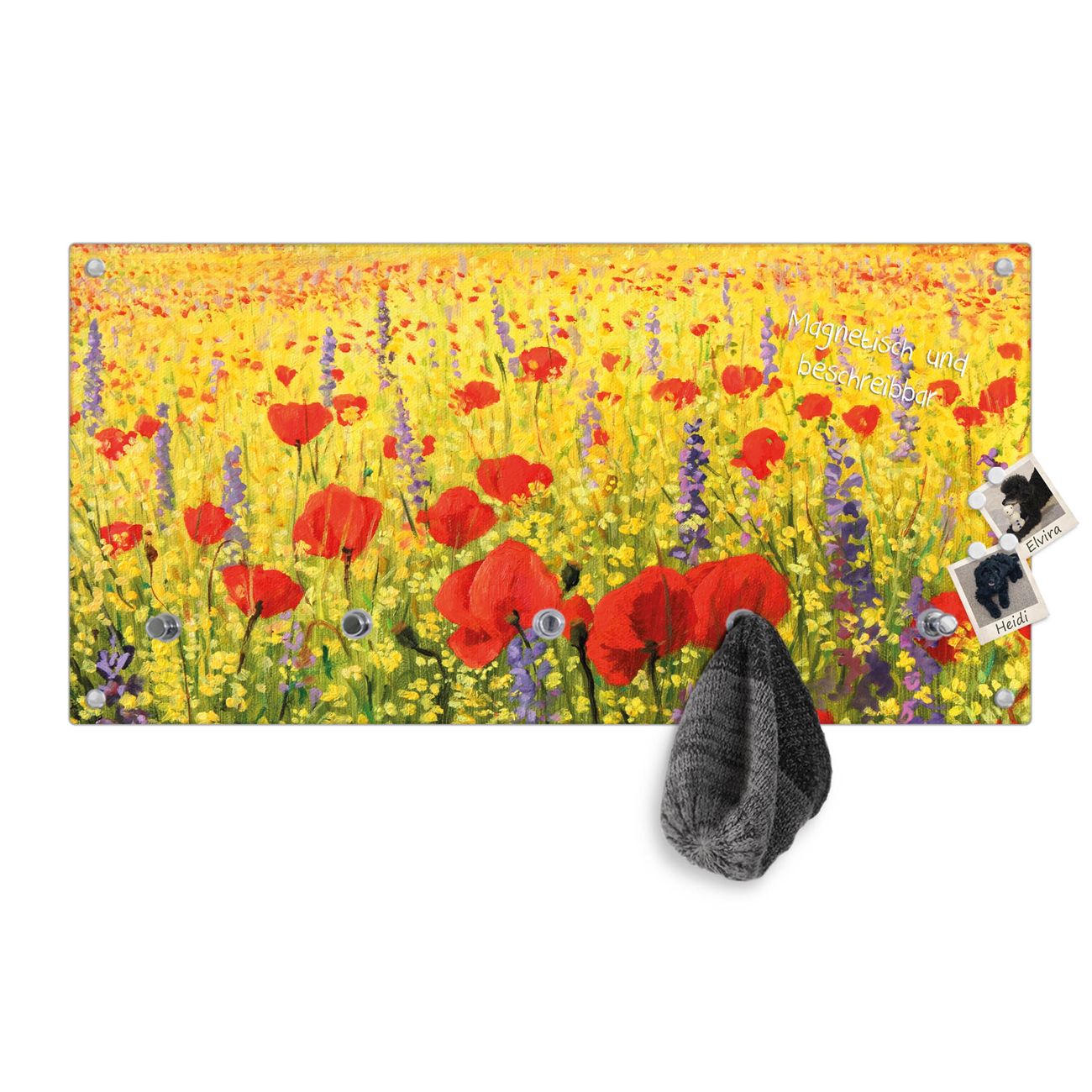 Wandgarderobe Glas 80x40cm Motiv Feld Mit Mohnblumen