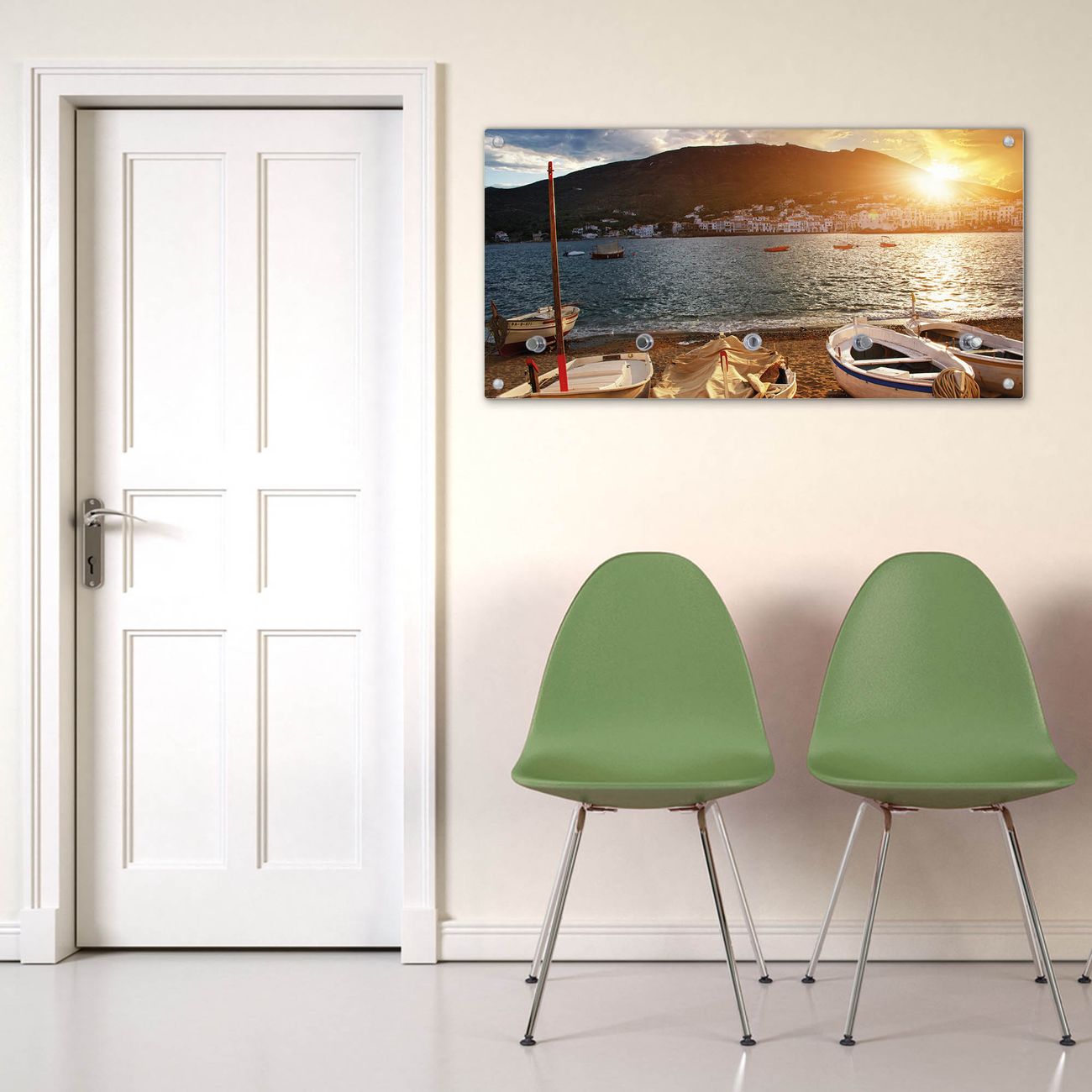 Wandgarderobe Glas 80x40cm Motiv Fischerboote
